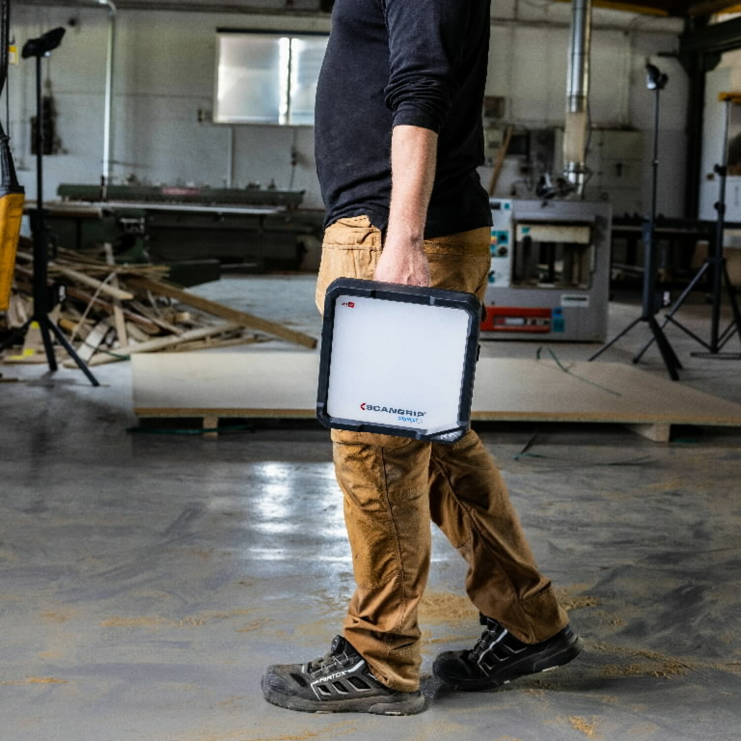 The Scangrip VEGA 4 CONNECT is a powerful LED work light designed for professional users. With a brightness of up to 4000 lumens, it offers diffuse, pleasant, and non-blinding lighting, perfect for painting and installation tasks.