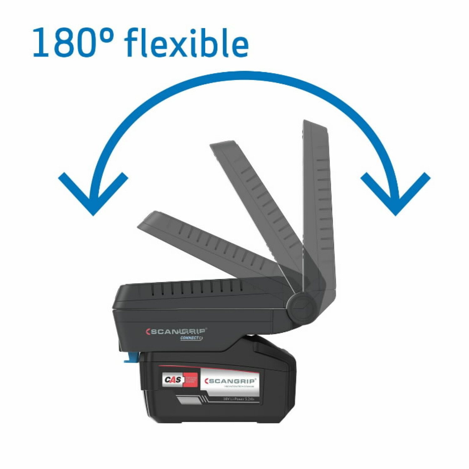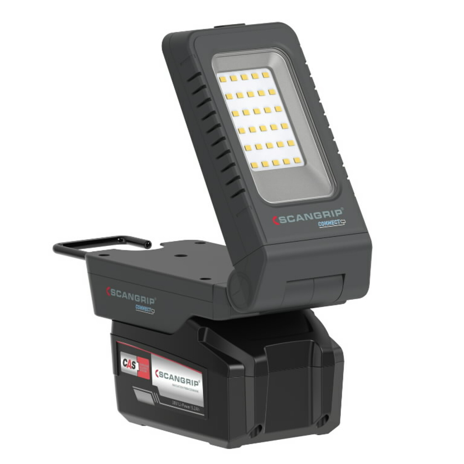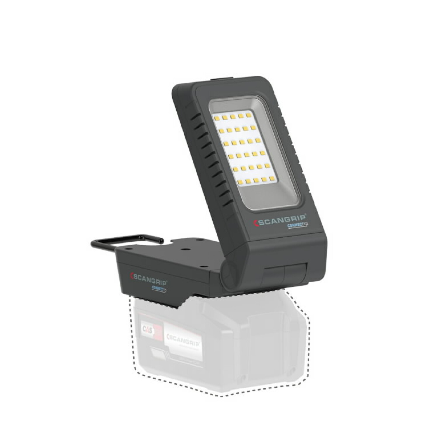 BASIC CONNECT is compatible with the METABO / CAS 18 V battery system and all other leading power tool brands' 18 V/20 V battery packs, using the SCANGRIP CONNECTOR. Additionally, the SCANGRIP POWER SUPPLY with order number 03.6123C can be used for direct power, providing unlimited light availability.