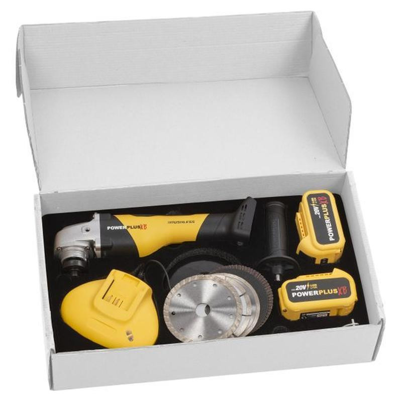 The compact POWXB20030 angle grinder from our Powerplus XB line is easily manoeuvrable thanks to its light weight and the soft grip handle. You can conquer all cutting, grinding or deburring projects effortlessly with the 5 Ø115 mm grinding discs provided.