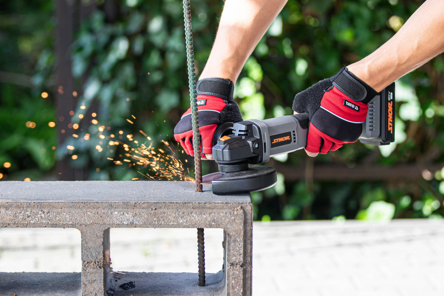 The STHOR Angle Grinder 20V (model code: 78090) is a cordless power tool designed for efficient cutting and grinding tasks. With its high-torque gearbox and ergonomic design, this angle grinder is perfect for safely cutting through metal components, such as ceiling profiles and threaded rods.