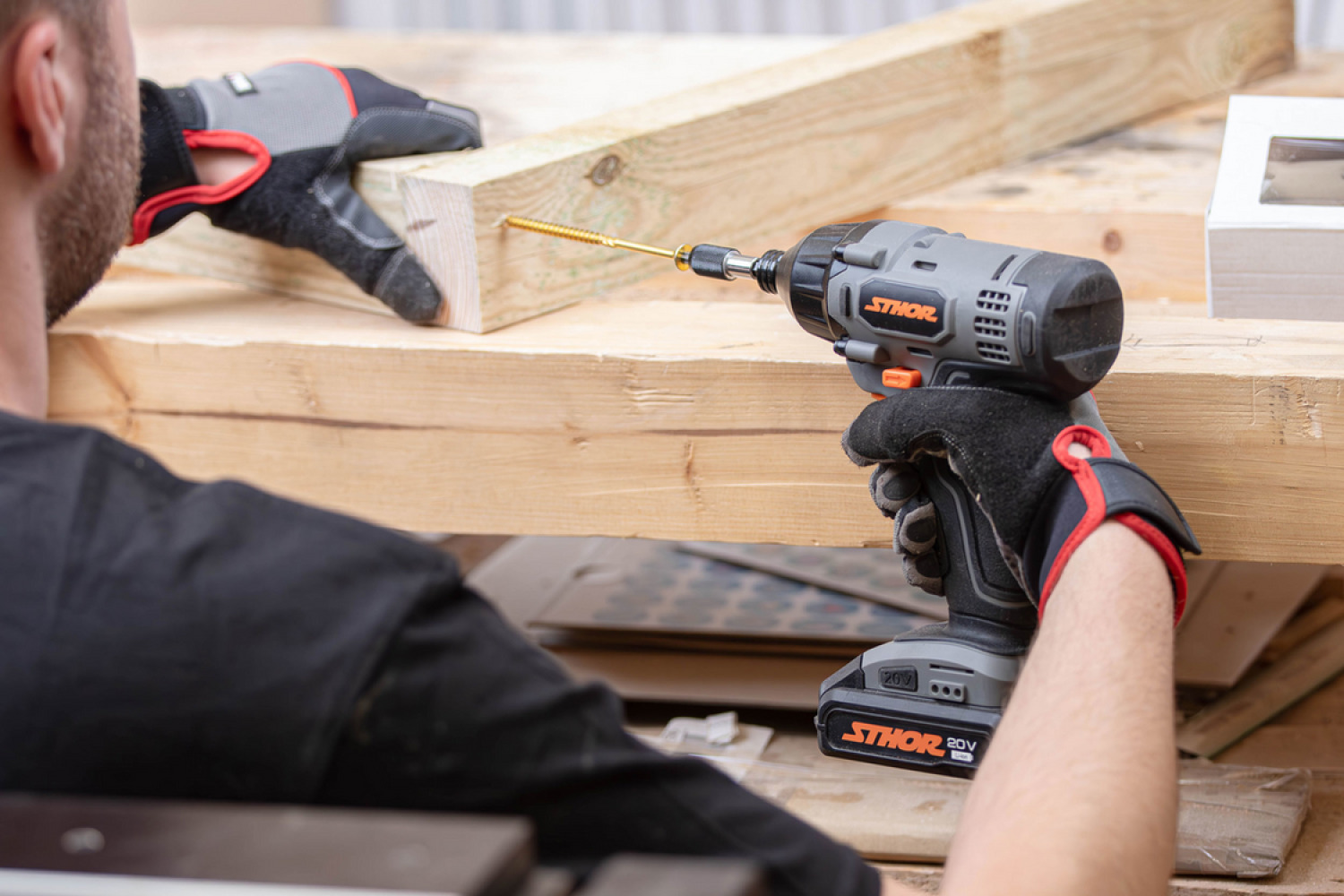 The STHOR Impact Driver 20V (model code 78113) is an essential tool designed for driving wood screws. Its impact function makes driving screws significantly easier as it eliminates the need to apply pressure against the screw. This screwdriver also facilitates the removal of damaged screws, which typically requires considerable force when using a traditional screwdriver.