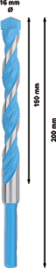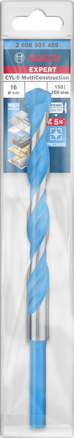 Universāls urbis CYL-9 MC 16x150x200 mm, 1 gab., Triecienurbjmašīnām/triecienskrūvgriežiem, urbjmašīnām/skrūvgriežiem EXPERT CYL-9 MULTI CONSTRUCTION URBIS, 2608901489, BOSCH