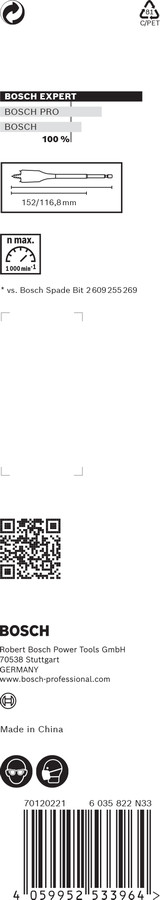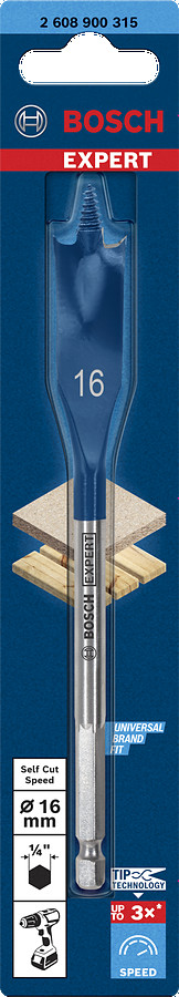 Spalvurbis ar centrējošo smaili, 16x152 mm, Urbjmašīnām/skrūvgriežiem, triecienurbjmašīnām/triecienskrūvgriežiem EXPERT SELF CUT SPEED LĀPSTVEIDA URBIS, 2608900315, BOSCH