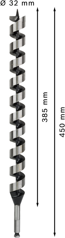 Spirālveida urbis kokam 32,0x450,0 mm,1 gab., Urbjmašīnām/skrūvgriežiem, triecienurbjmašīnām/triecienskrūvgriežiem PRO WOOD SPIRĀLURBIS, 2608597652, BOSCH