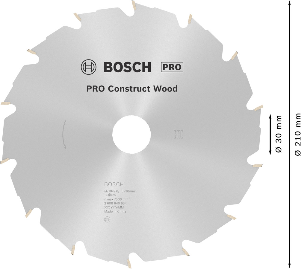 Ripzāģa disks 210x30 mm Construct Wood, Rokas ripzāģiem PRO CONSTRUCT WOOD RIPZĀĢA ASMENS, 2608640634, BOSCH