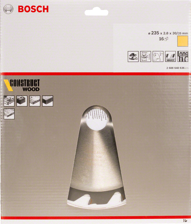 Ripzāģa disks 235x30mm Construct Wood, Rokas ripzāģiem PRO CONSTRUCT WOOD RIPZĀĢA ASMENS, 2608640636, BOSCH