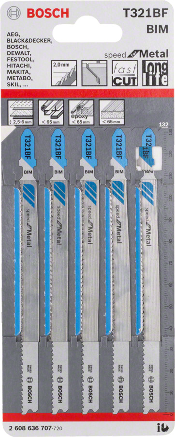 5 figūrzāģa asmeņi T321BF Speed for Metal, Figūrzāģiem PRO METAL PIPES AND PROFILES T321BF FIGŪRZĀĢA ASMENS, 2608636707, BOSCH