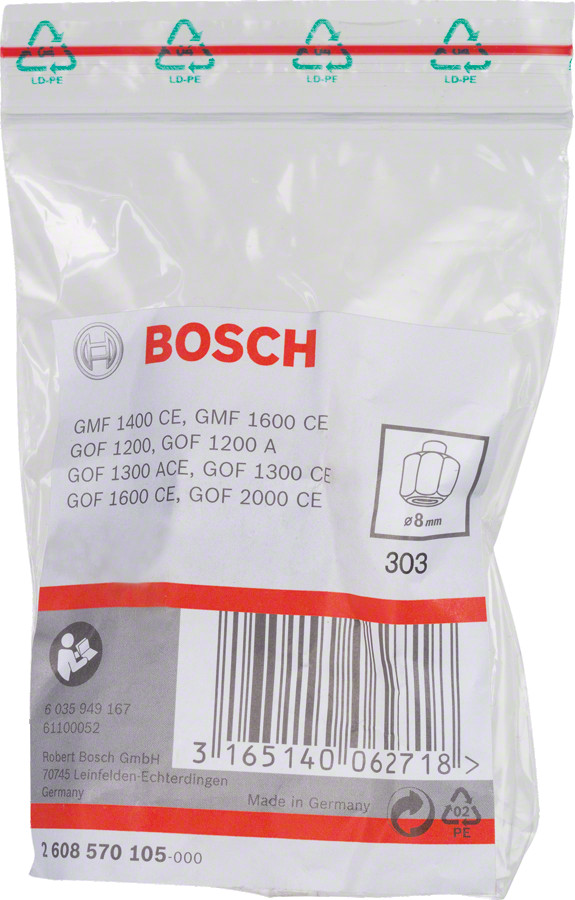 Canga, 8 mm GOF 1200 A, 1300 ACE, Rokas frēzēm SPĪĻAPTVERE, 2608570105, BOSCH