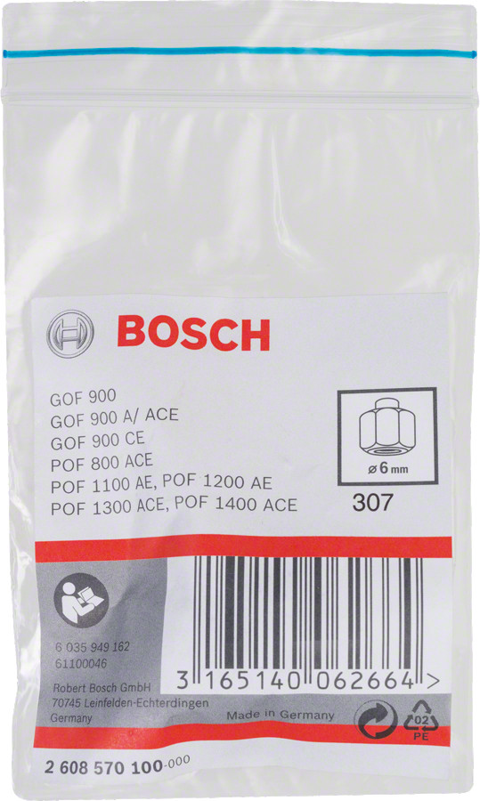 Canga, 6 mm POF 800 ACE, GOF 900 ACE, Rokas frēzēm SPĪĻAPTVERE, 2608570100, BOSCH