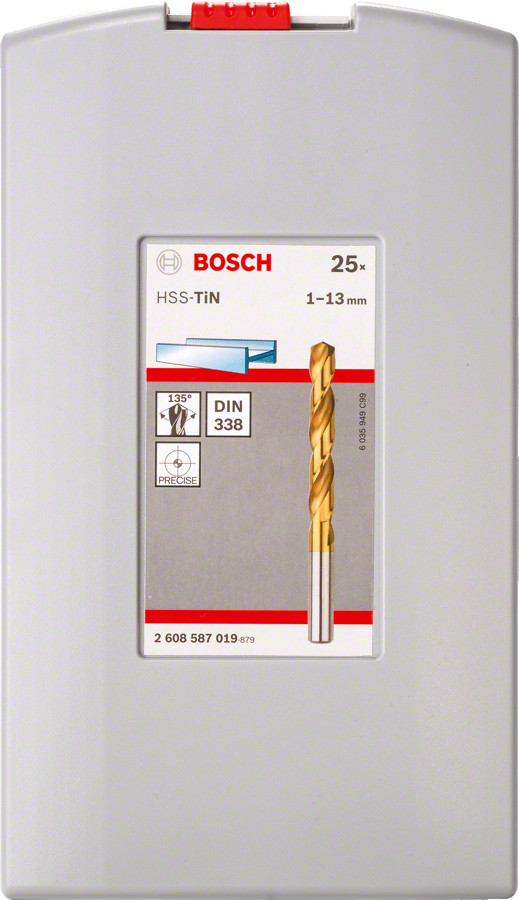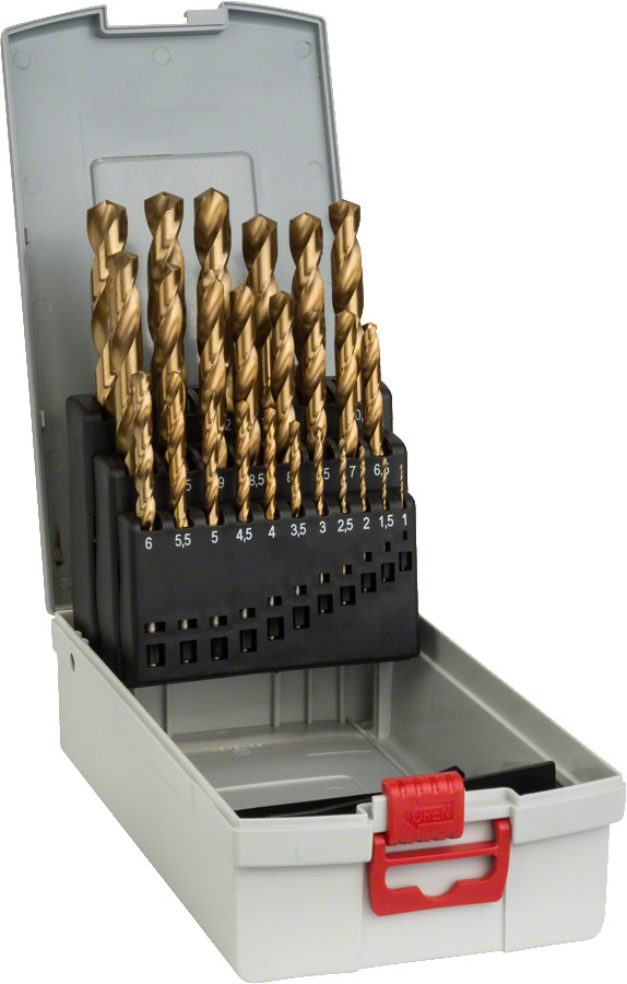 Urbjmašīnām/skrūvgriežiem HSS SPIRĀLVEIDA URBJU KOMPLEKTS AR TIN PĀRKLĀJUMU, ROBUST LINE, 6 PIEDERUMI, 2608587019 BOSCH
