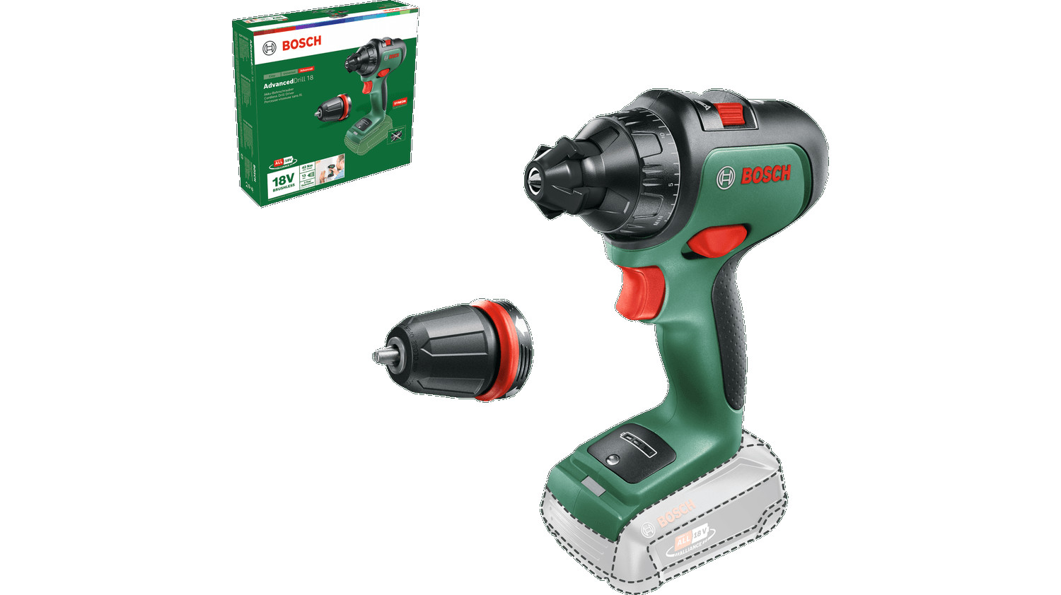 Bezvadu urbjmašīna-skrūvgriezis AdvancedDrill 18, 18V, bezsuku motors, 06039B5009, BOSCH