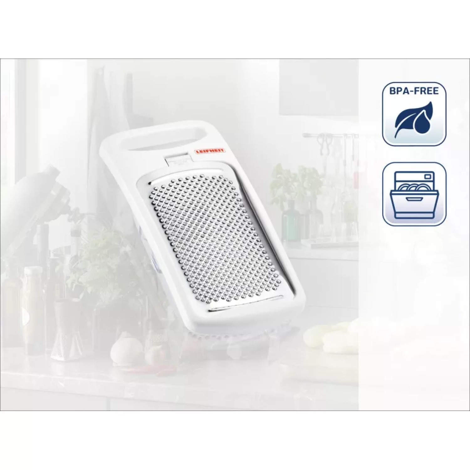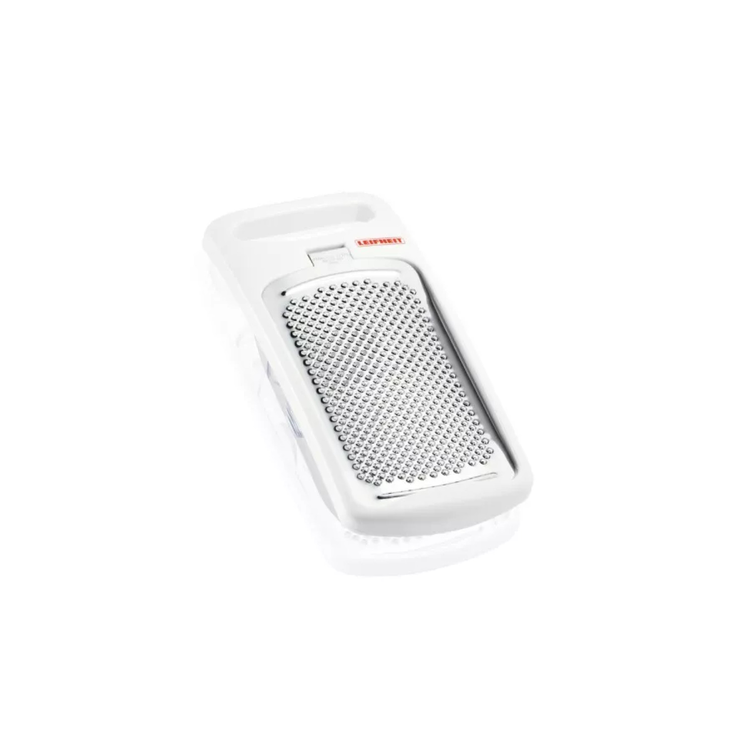 The small Leifheit ComfortlLine Nutmeg Grater is perfect for freshly grating aromatic nutmeg spices any time you need them. The specially hardened stainless steel friction surface guarantees fine grating results. It features a small storage container that allows you to store grated nutmeg or freshly grated spices. This grater is also dishwasher safe.