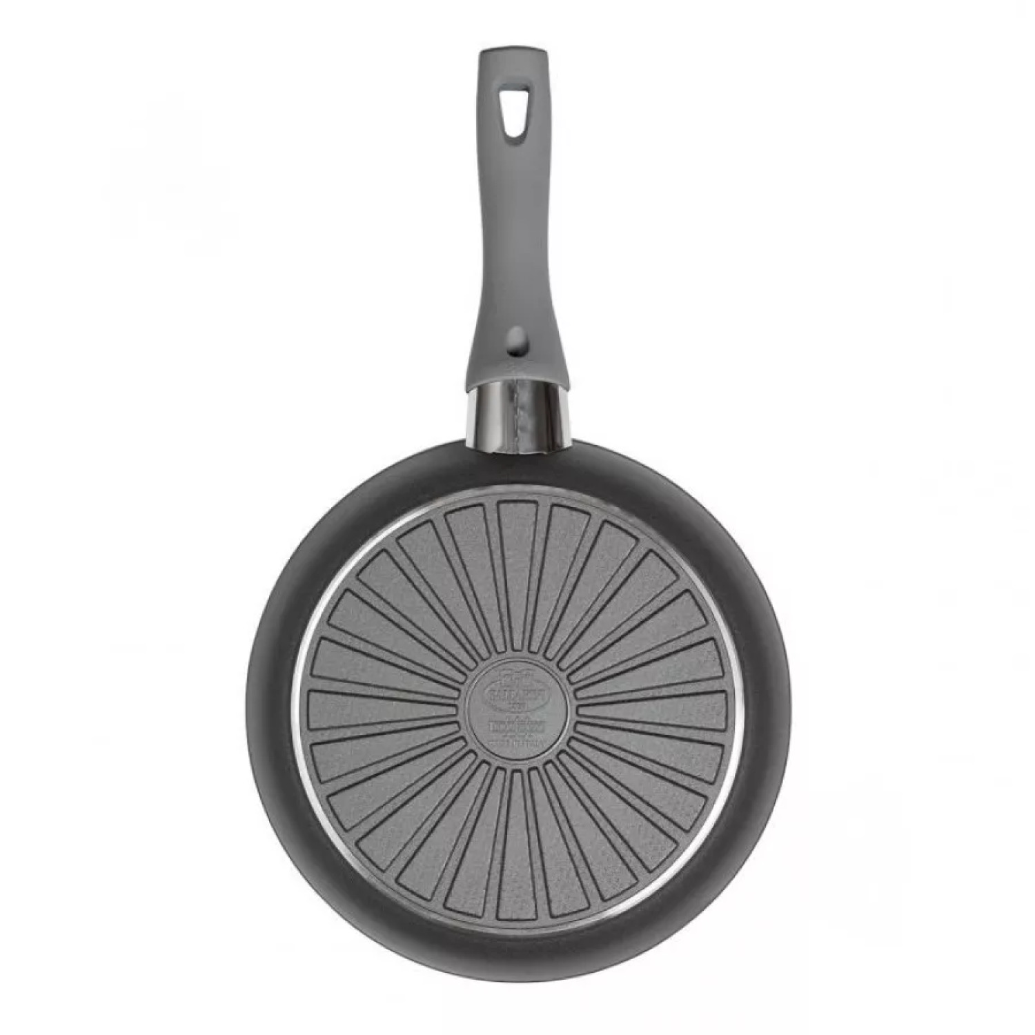This is a special beam-shaped induction base, patented in Europe, developed by BALLARINI. This special induction base distributes heat very quickly and evenly, which ensures excellent cooking results and the stability of the pan base.