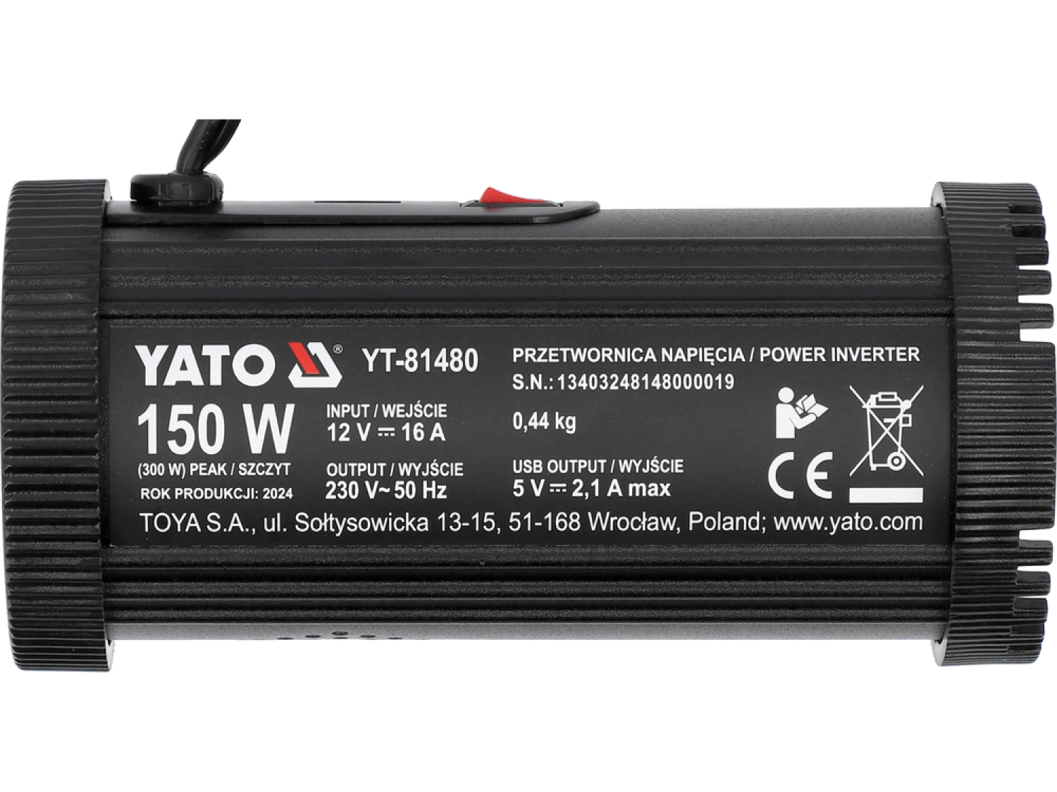 The YATO POWER INVERTER YT-81480 is designed to power electrical devices that require mains current using a 12V car battery. This inverter is particularly useful for providing power in locations where access to traditional electrical outlets is limited.