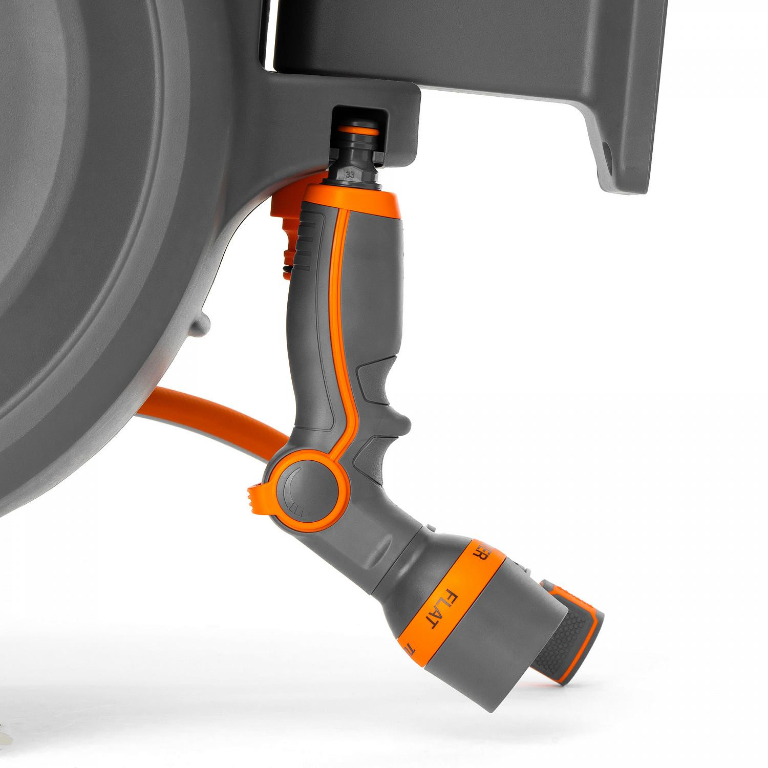 The auto reel is equipped with MaxiFlex hose that easily resists kinks and twists.