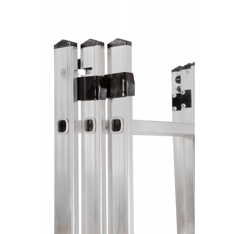 Automatic locking system firmly secure ladder sections in place.