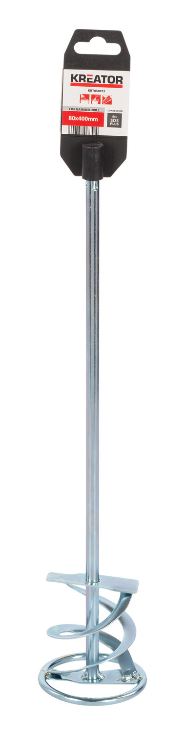 The KREATOR KRT050012 paddles are designed for use with drill hammers that feature an SDS Plus connection. These paddles are ideal for mixing a variety of materials, including paint, lacquer, powders (such as glue), and plaster. With a length of 400 mm and a diameter of 80 mm, they provide excellent mixing capabilities.