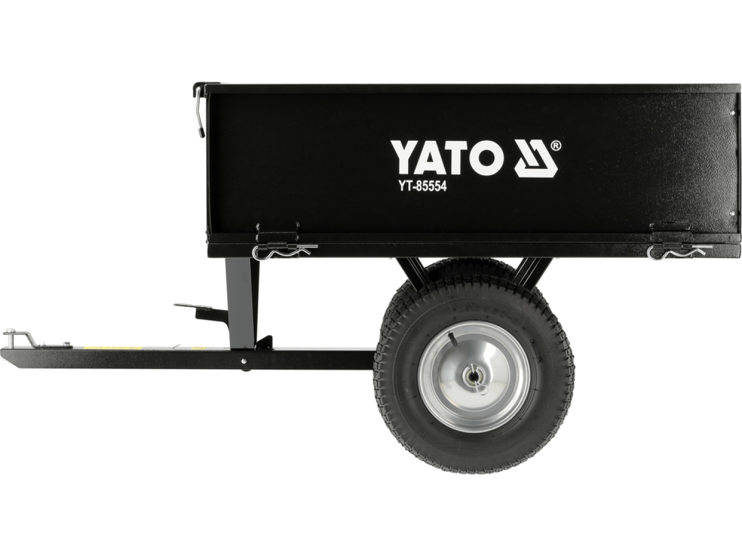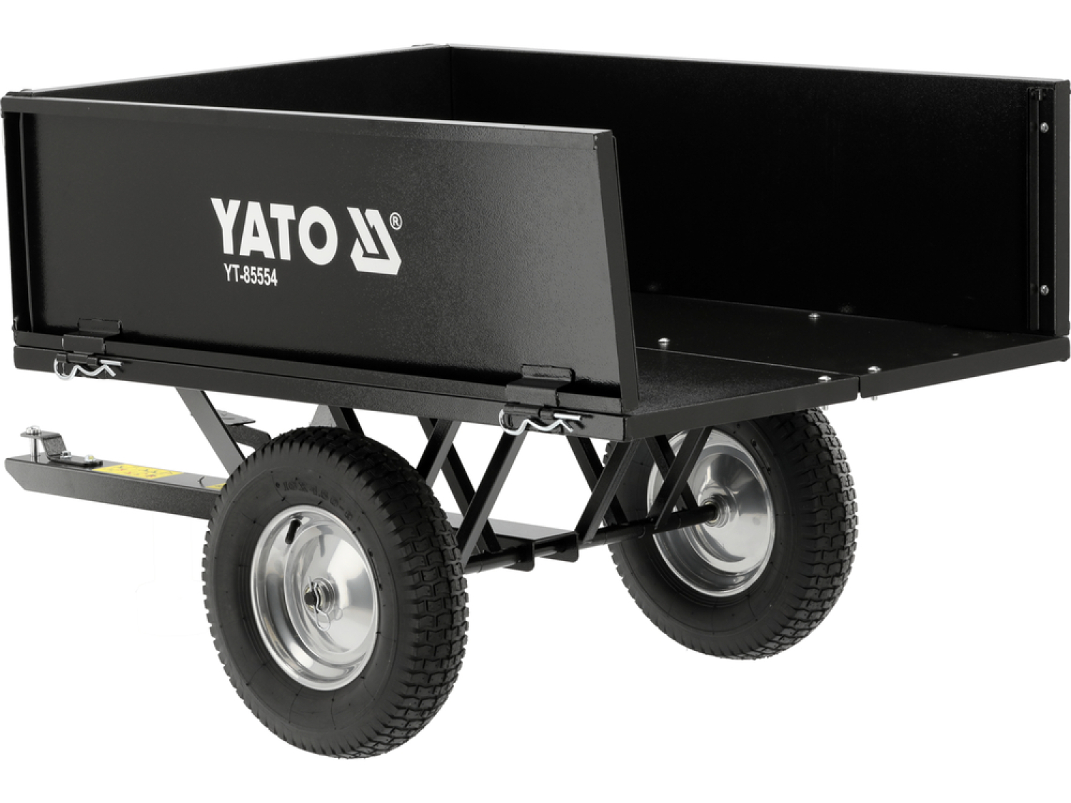 The YATO YT-85554 is a professional garden tractor trailer designed for efficient hauling. With a maximum load capacity of 225 kg, this trailer features a tipping function and a removable rear side, making it incredibly versatile for various gardening tasks.