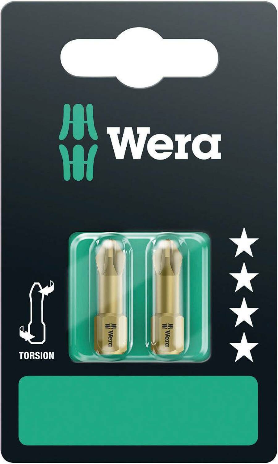 Hard bits with torsion zone, particularly suitable for screw fitting in soft materials such as wood. The hardness property prevents the premature breakage of the driving tip. The torsion zone springing torque peaks and increases the life of the bits.