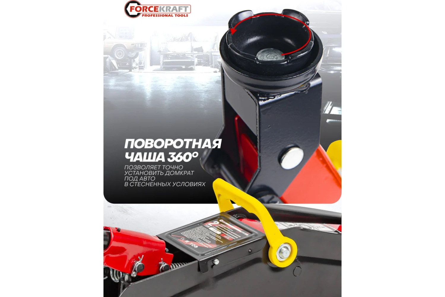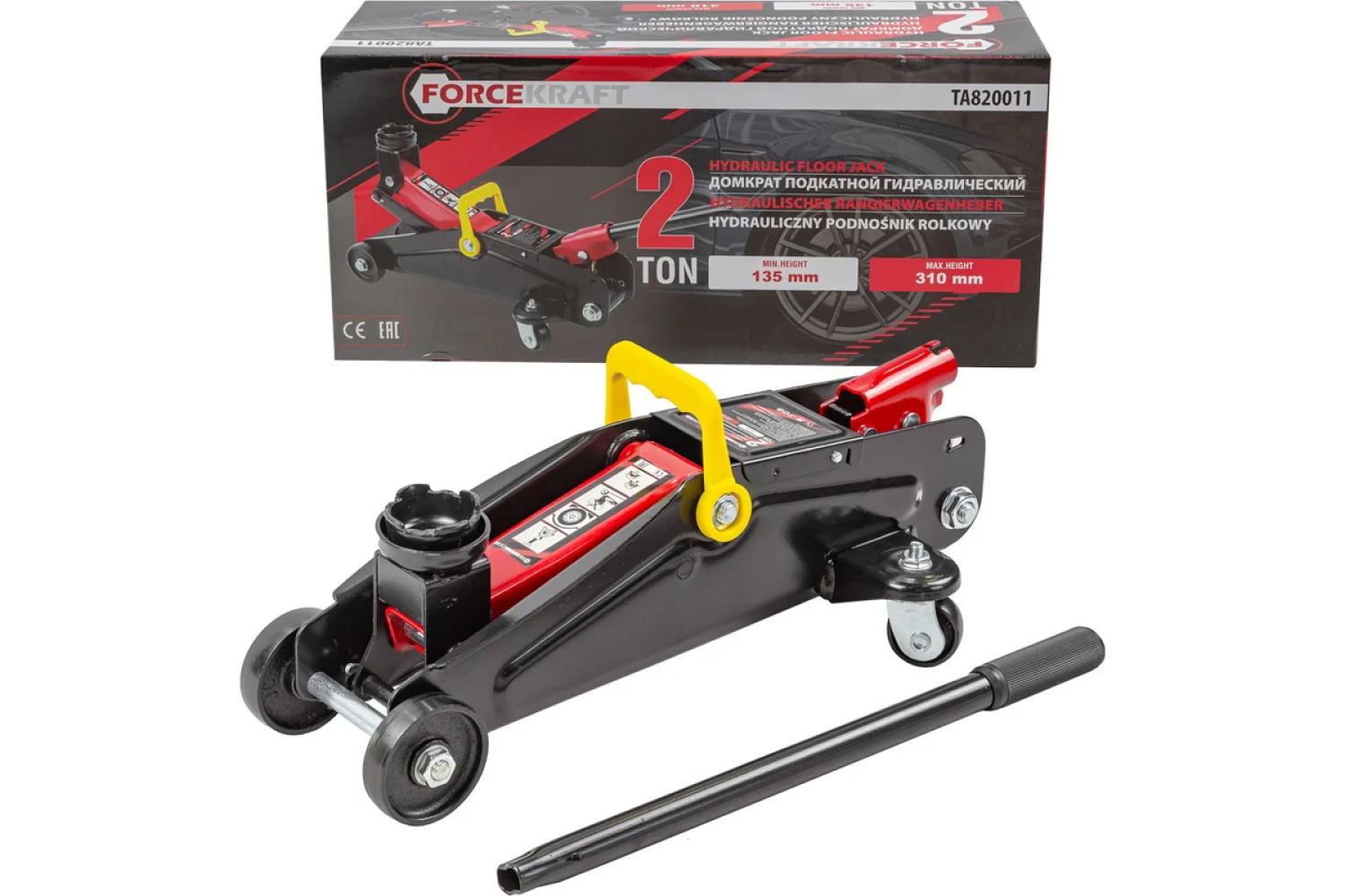 The hydraulic floor jack from Forcekraft, model FK-TA820011, is high-quality equipment designed for lifting vehicles in auto repair shops, tire installations, workshops, or garages.