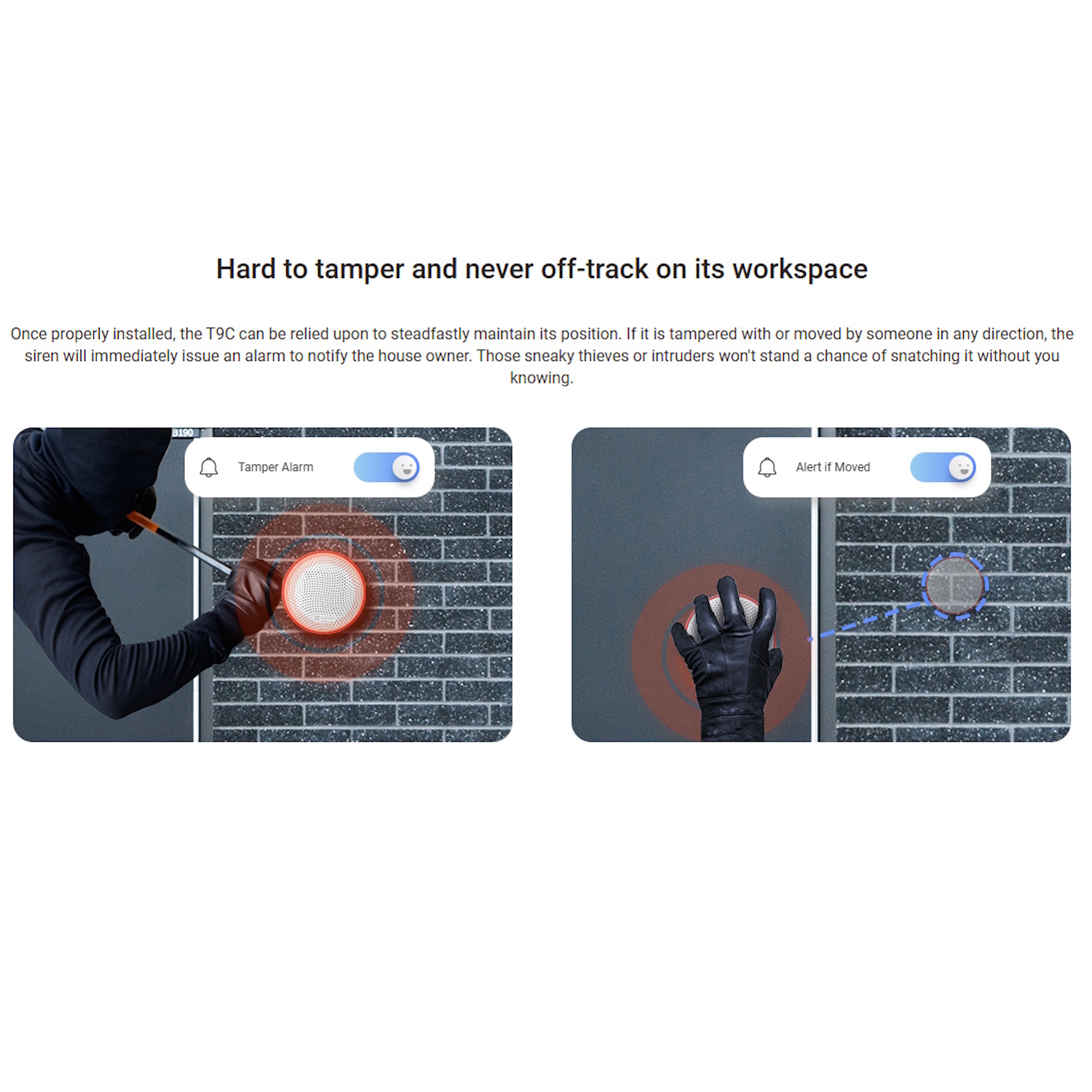 Loud & Customizable Siren – Adjust the alarm volume from 90 to 105dB, ensuring the best deterrence level for your environment.