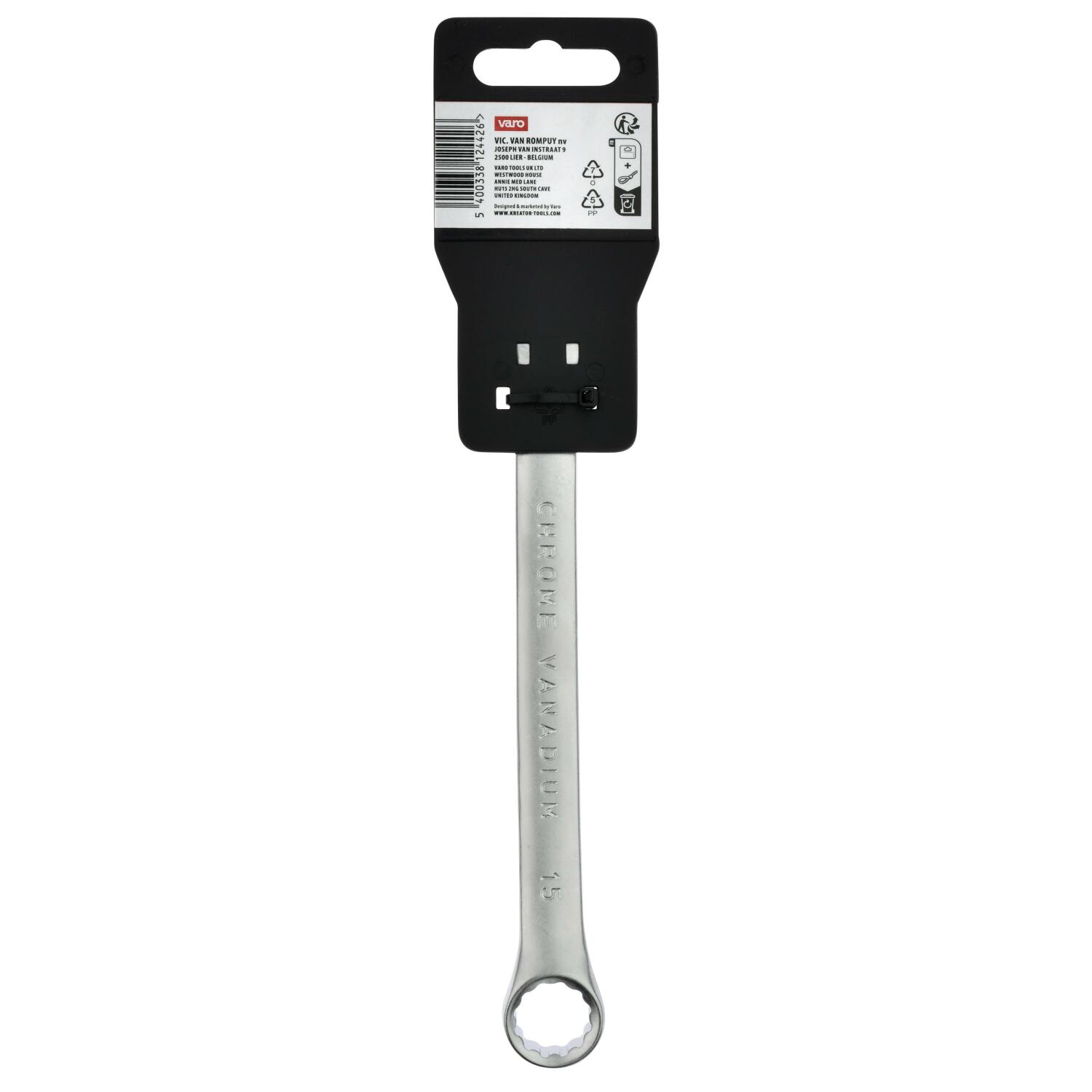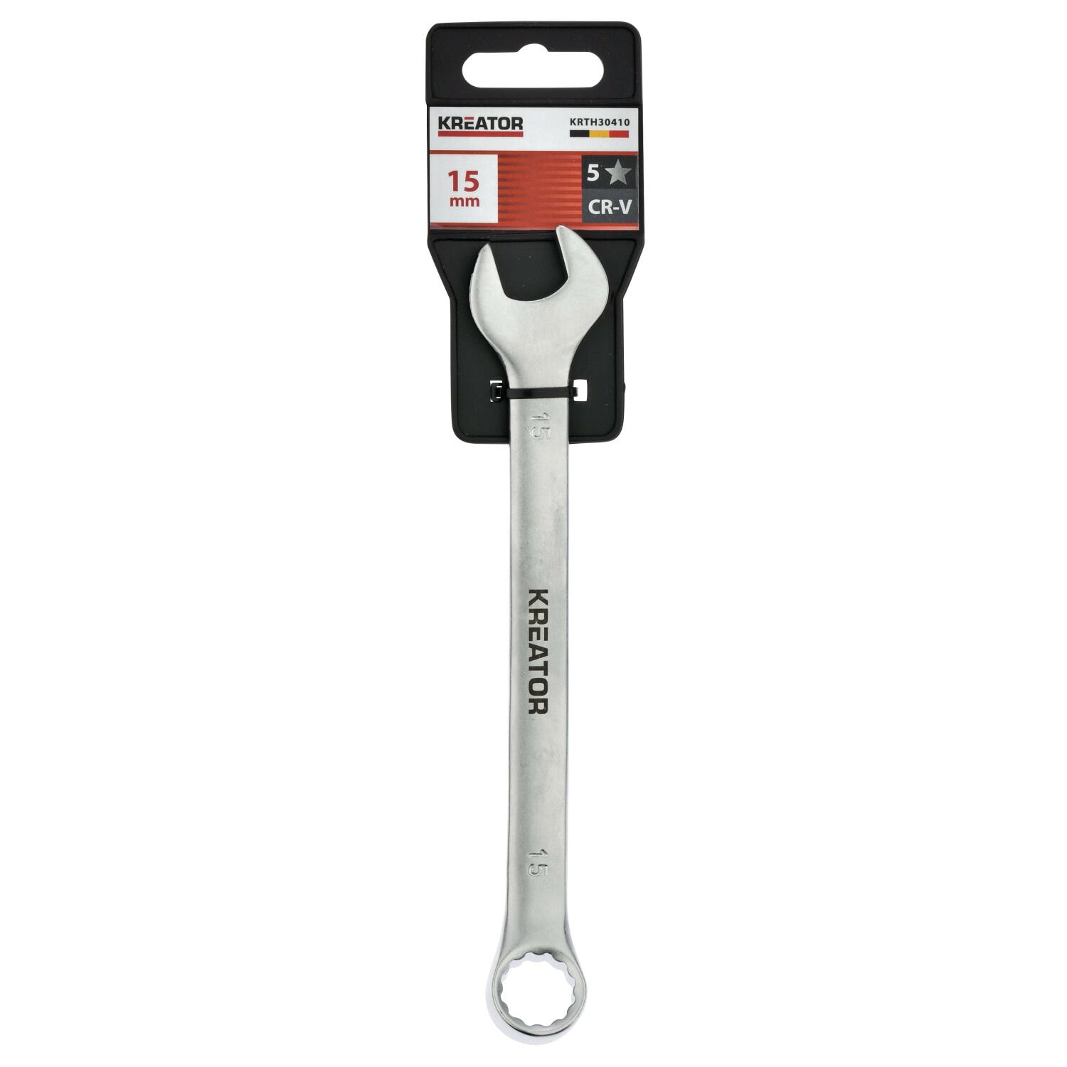 Combination open-ring spanner, Kreator, KRTH30410, 15 mm, 191 mm, chrome-vanadium