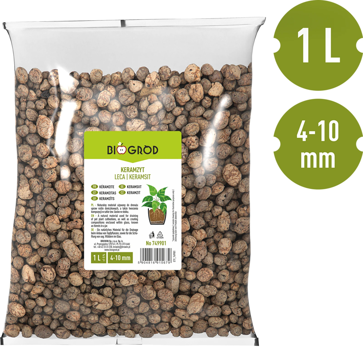 The BIOOGROD Leca clay pebbles, model code 749901, are a natural material designed for the drainage of potted plants and for creating stunning glass-enclosed compositions, popularly known as "forests in a jar."