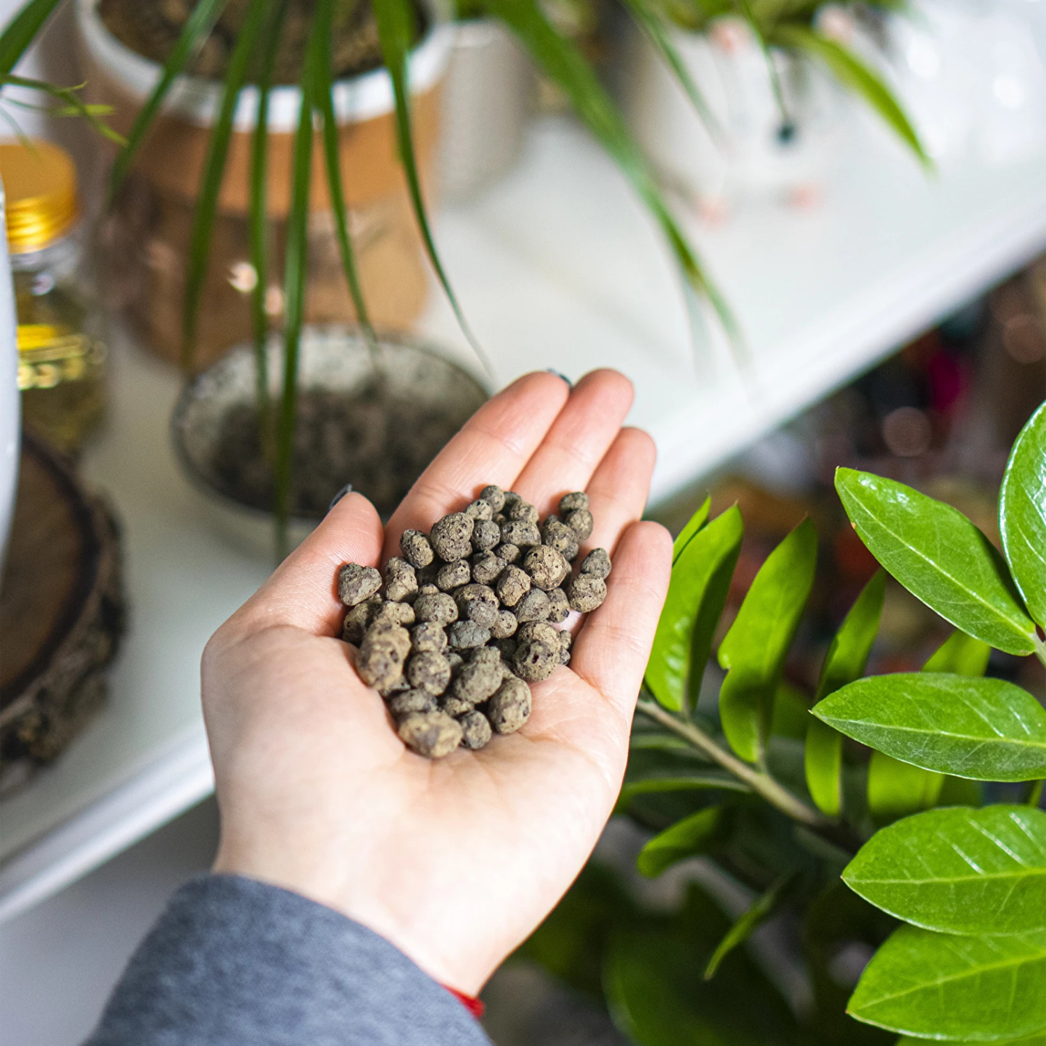 Leca is a natural granulate produced through the firing of clay. It is excellent for creating specialized substrates for plants with specific needs regarding water and air content. This medium and coarse fraction (4 - 10 mm) of Leca works wonderfully for establishing drainage layers in larger pots, and can also be used in glass-enclosed compositions. Additionally, Leca can be utilized on the surface of plant pots as a decorative layer to maintain stable humidity. To create optimal humidity levels in the air, consider using Leca-filled bowls placed on windowsills near plants sensitive to dry air. Thanks to its porosity, Leca placed on the top layer of plant pots inhibits weed growth and prevents decay processes that lead to mold formation.