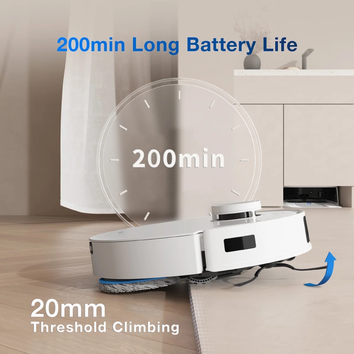 11,000 Pa ultra-strong suction — deep cleaning performance for carpets and hard floors.