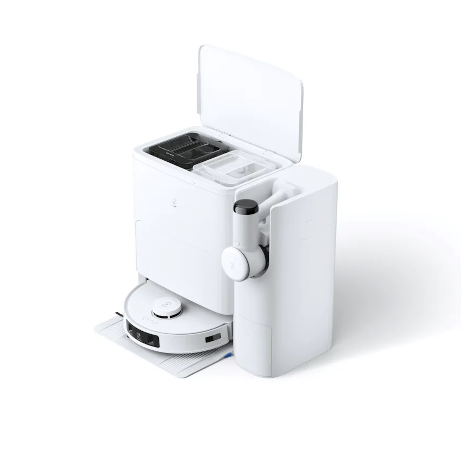 Automatic base station — charges, empties dust and stores mop accessories.