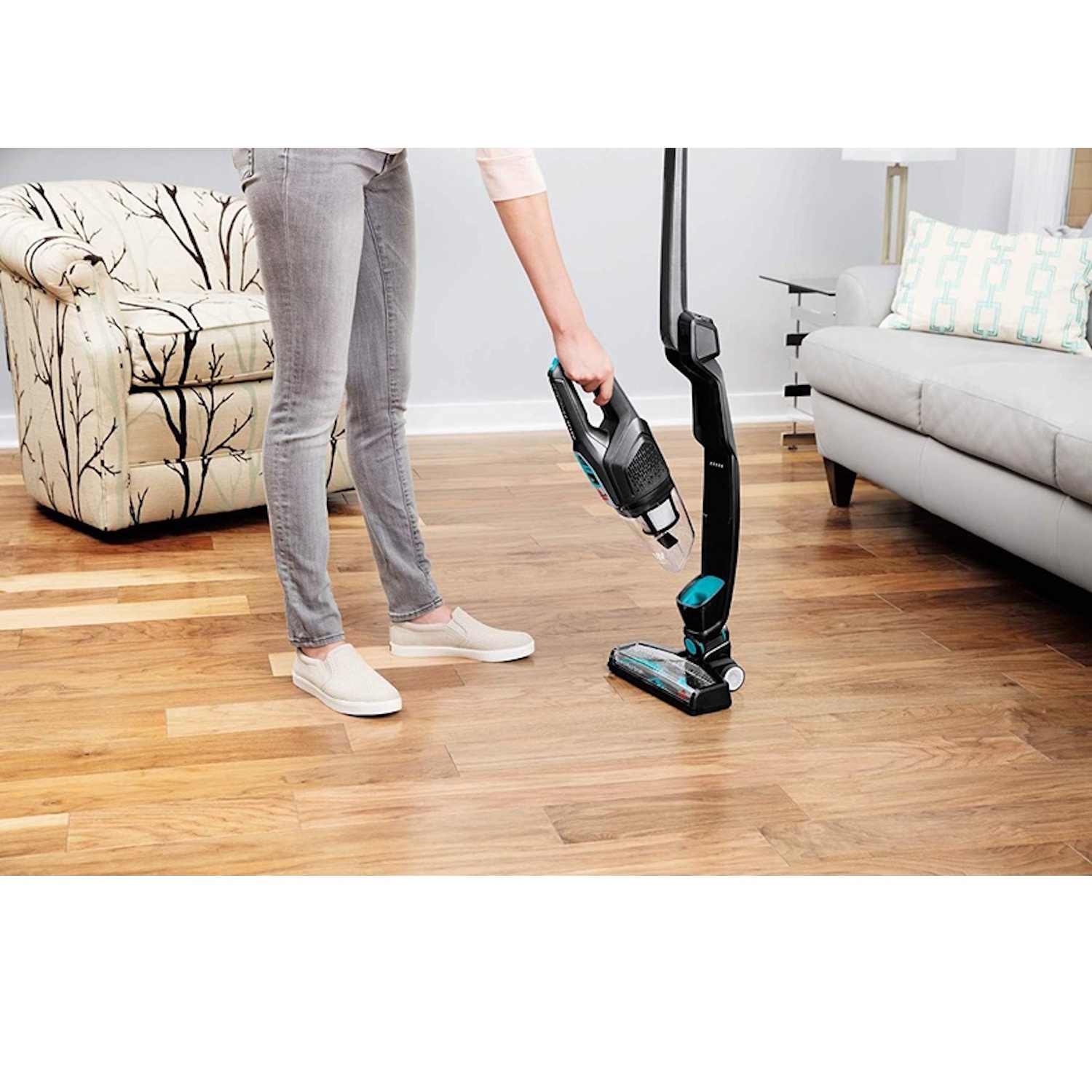 ● Dual-mode cleaning: full-length stick vacuum for floors and compact handheld vacuum for above-floor surfaces.