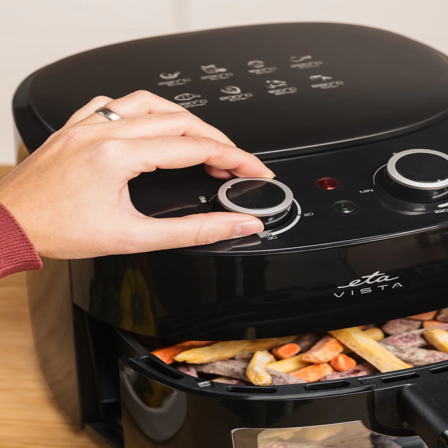 The ETA016890000 Vista hot-air fryer with 1300 W power, 4.3 L capacity and Hot Air technology delivers crispy, healthy meals with minimal oil usage. Its compact size and simple controls make it a perfect fit for small kitchens, students, and anyone looking for healthier everyday cooking.