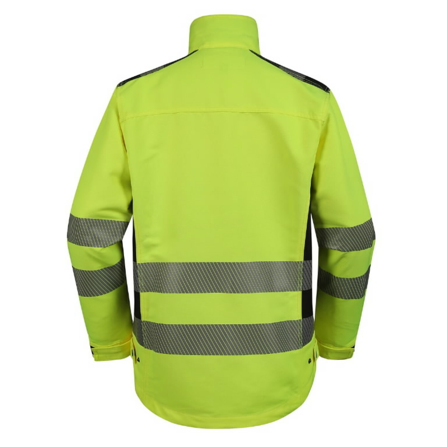The PESSO Hi-Vis Jacket Uranus DS135G in yellow and black is designed for high visibility and durability. This safety jacket is perfect for outdoor work and activities that require enhanced visibility.