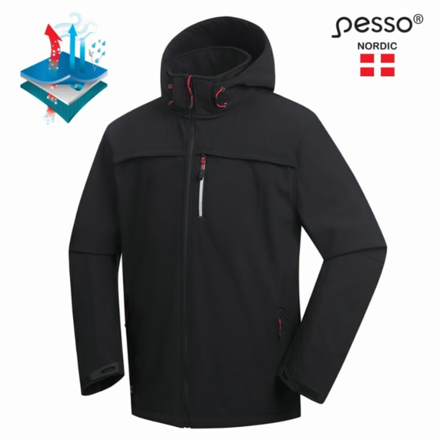 The PESSO Softshell Jacket Atlanta, model code ATLANTA_B-3XL, is an ideal outerwear solution designed for both water and wind resistance. This jacket is made from breathable Softshell material, featuring a special moisture-repellent PU membrane that disperses excess moisture while allowing your skin to breathe.