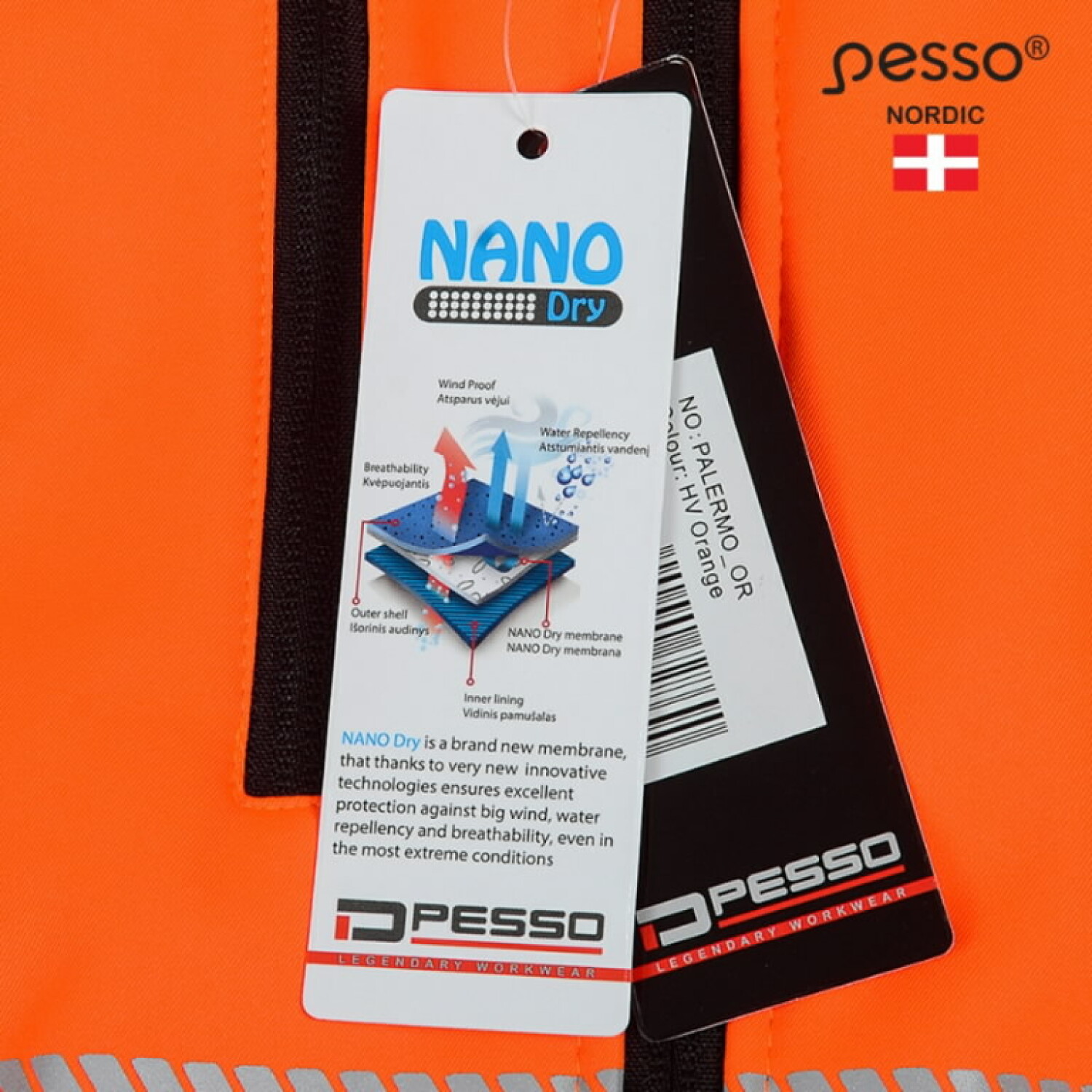 The PESSO Hi-vis softshell jacket model PALERMOOXL is designed for comfort and visibility. This windproof and waterproof softshell jacket is ideal for outdoor activities and work environments where safety is a priority.