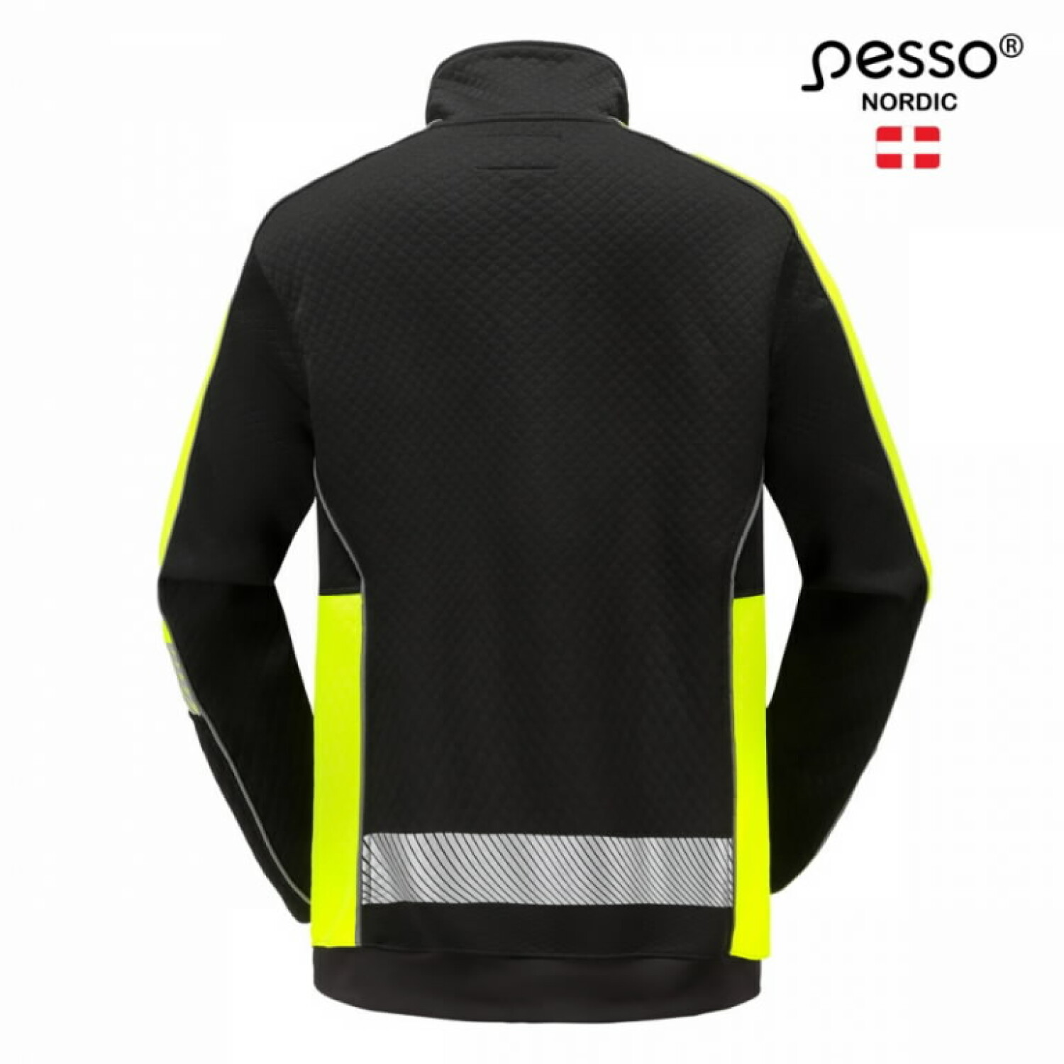 The PESSO high-visibility jacket, model FL06, in black and yellow is designed for safety and comfort. This jacket is ideal for those who require high visibility in low light conditions.