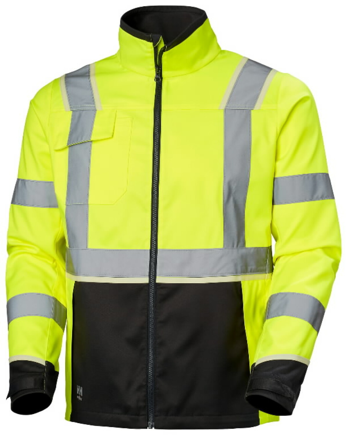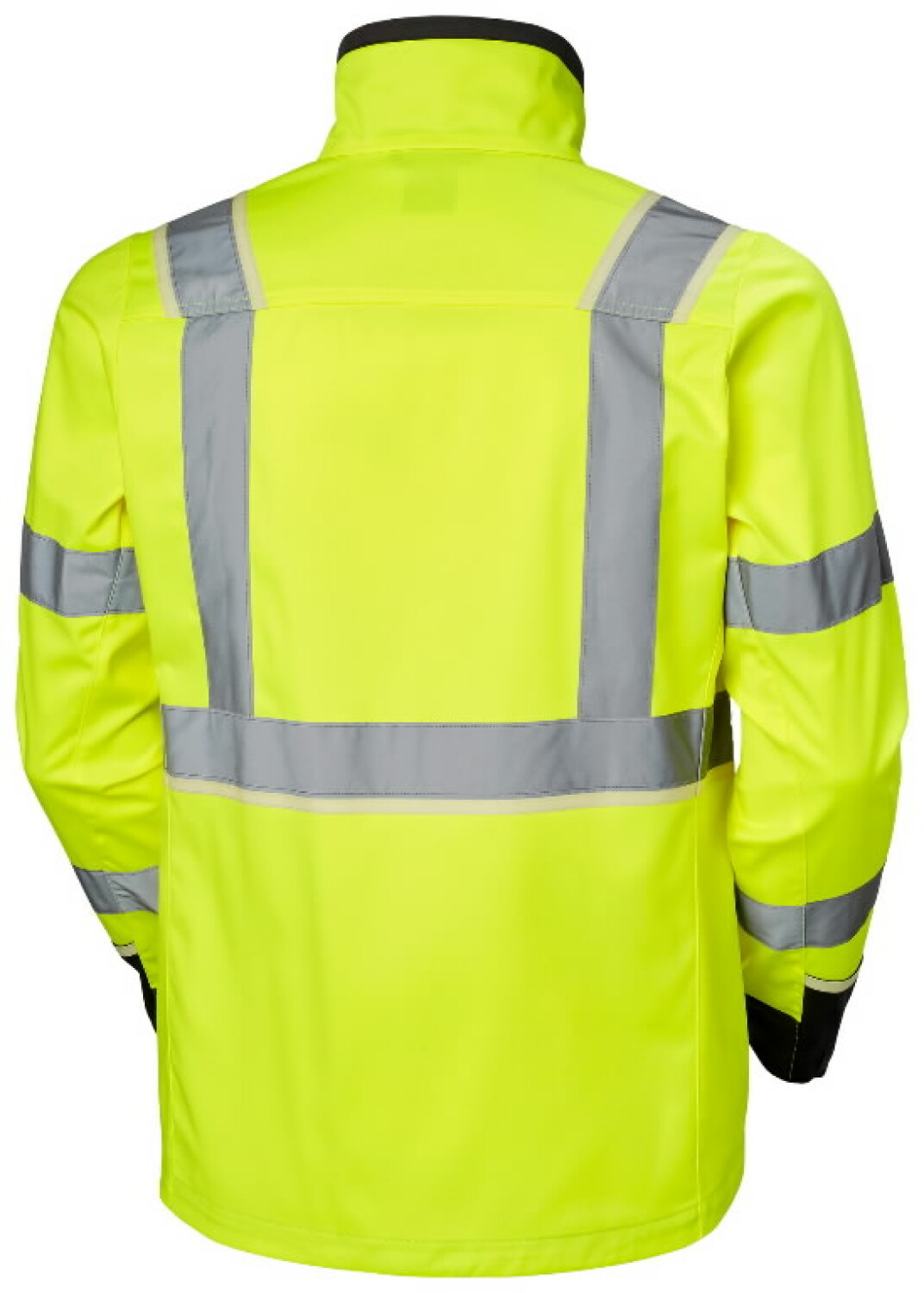 The Helly Hansen Uc-me stretch Hi-vis jacket, model 77215_369-L, is designed for enhanced visibility and comfort in various work environments.