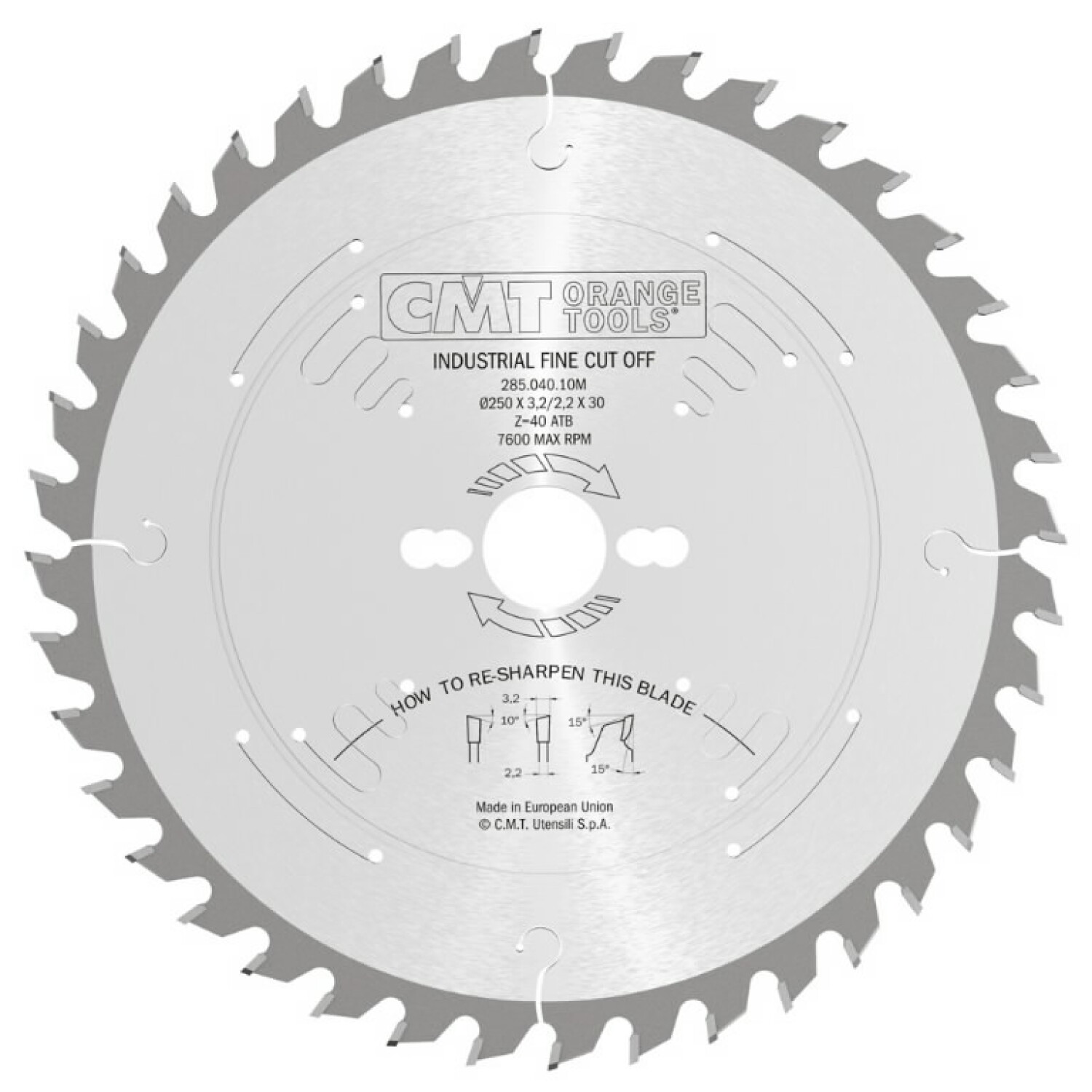 The CMT 285.048.12M saw blade is designed for cutting wood with precision and efficiency. This blade features a diameter of 300 mm, a thickness of 3.2 mm, and a bore diameter of 30 mm, making it suitable for various wood cutting applications.
