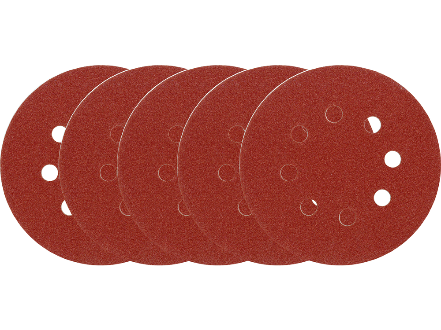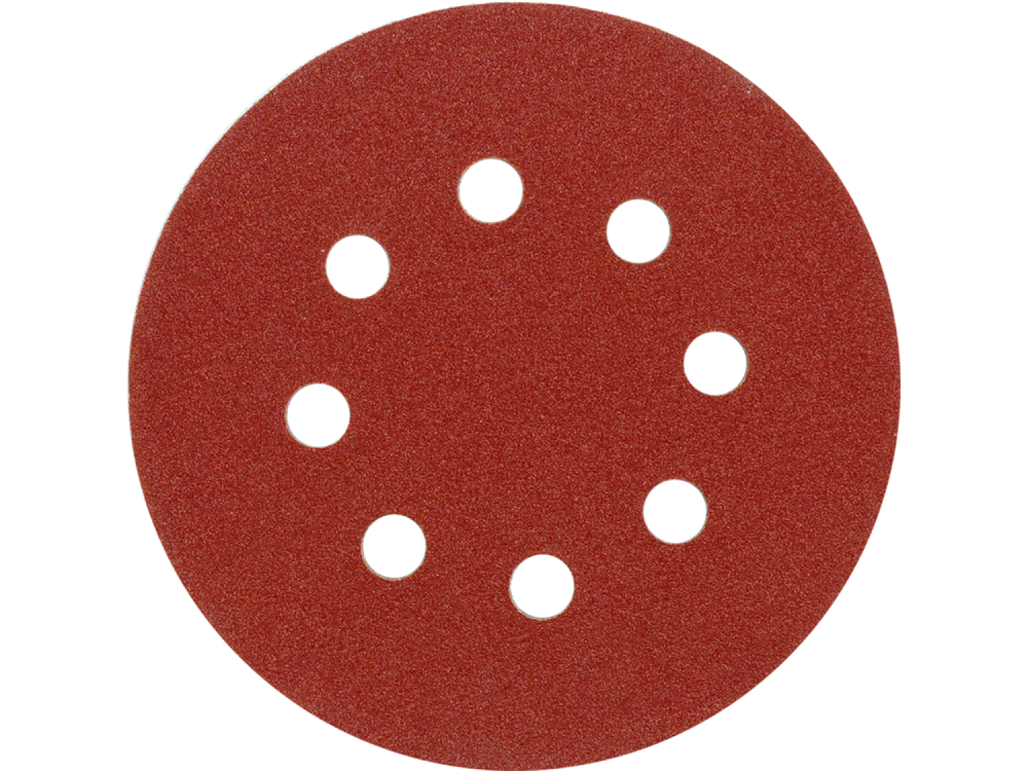 Abrasive discs are made on a Velcro type foundation that allows for easy attachment to support drives. They are equipped with eight dust removal holes to effectively minimize dust while working.