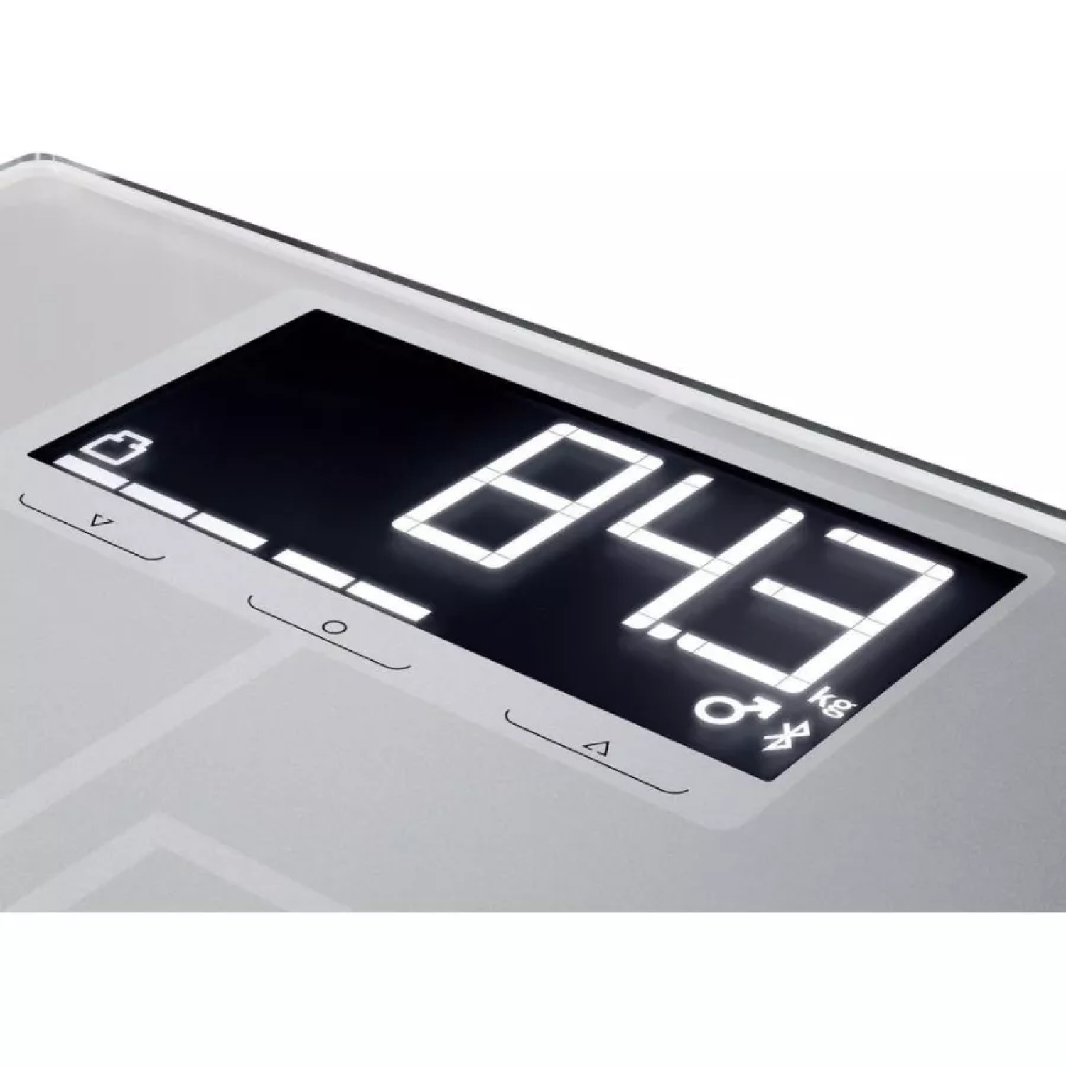 Convenient automatic on and off functionality makes usage simple: the screen powers on immediately upon stepping onto the scale and switches off right after weighing. Moreover, unlike most bathroom scales, the Shape Sence Connect scales have an impressive load capacity of up to 200 kg with an accuracy of 100 g. With a low-profile design and large weighing platform made of ultra-clear safety glass, this product not only complements a modern bathroom aesthetically but also ensures safe use with its non-slip base. Batteries are included for immediate use.