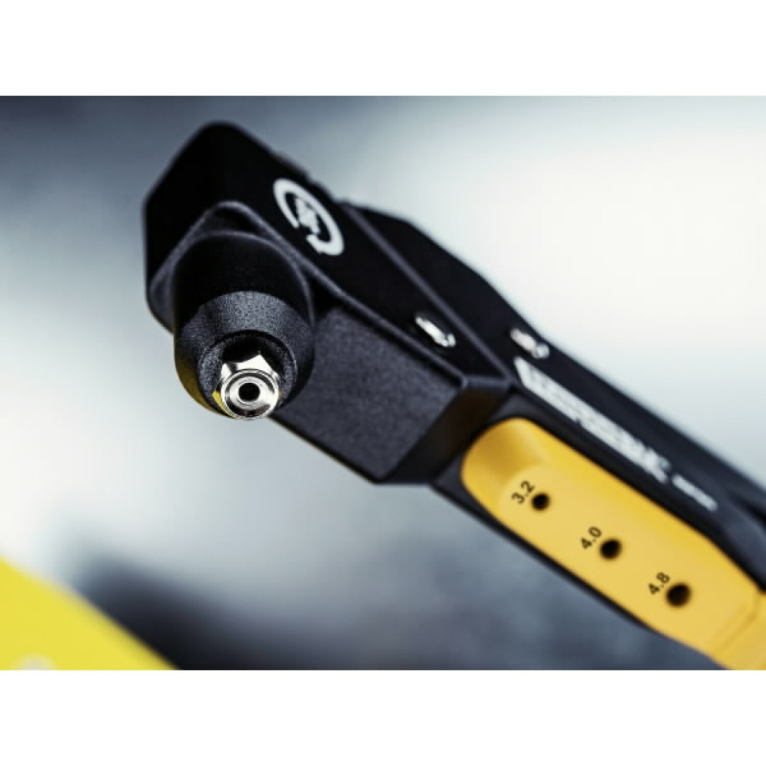 Introducing the RAPID RP60 MULTI rivet gun, equipped with an innovative head that adapts to the size of the rivet.