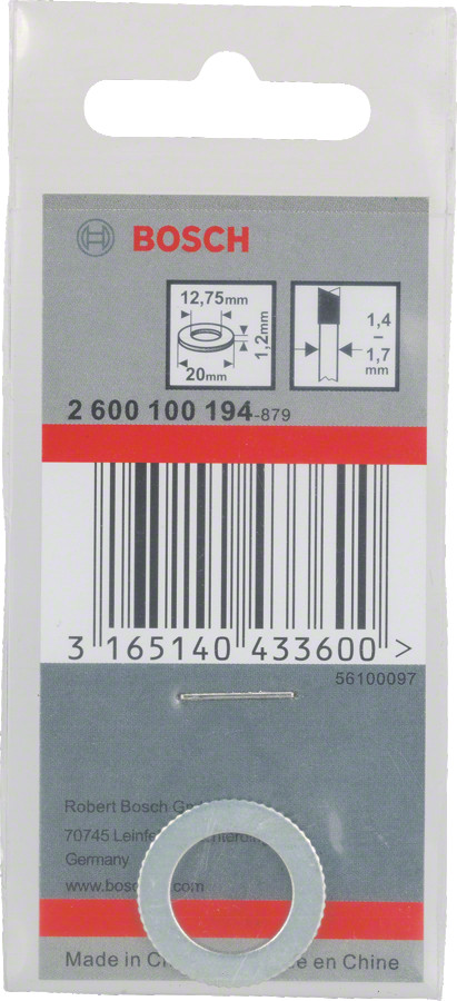 Reducējošais gredzens 20 x 12,75 x 1,2 mm, Rokas ripzāģiem, rokas sausajiem griežņiem, paneļzāģiem, galda zāģiem PRO REDUCTION RING RIPZĀĢA ASMENIM, 2600100194, BOSCH