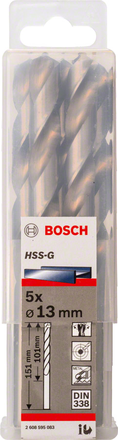 HSS-G urbji metālam 13.0mm, 5gab., Urbjmašīnām/skrūvgriežiem PRO METAL HSS-G STANDARTA SPIRĀLVEIDA URBJA GARUMS, 2608595083, BOSCH