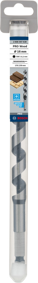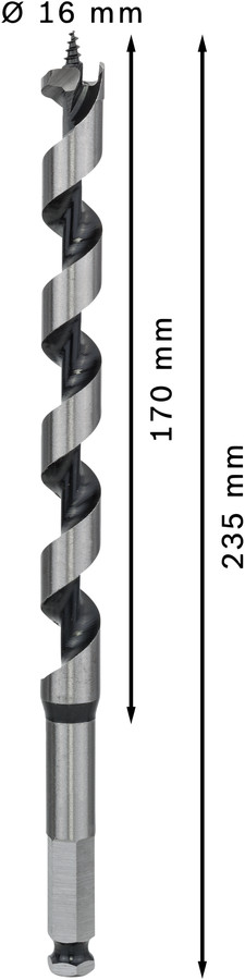 Spirālveida urbis kokam 16,0x235,0 mm,1 gab., Urbjmašīnām/skrūvgriežiem, triecienurbjmašīnām/triecienskrūvgriežiem PRO WOOD SPIRĀLURBIS, 2608597630, BOSCH