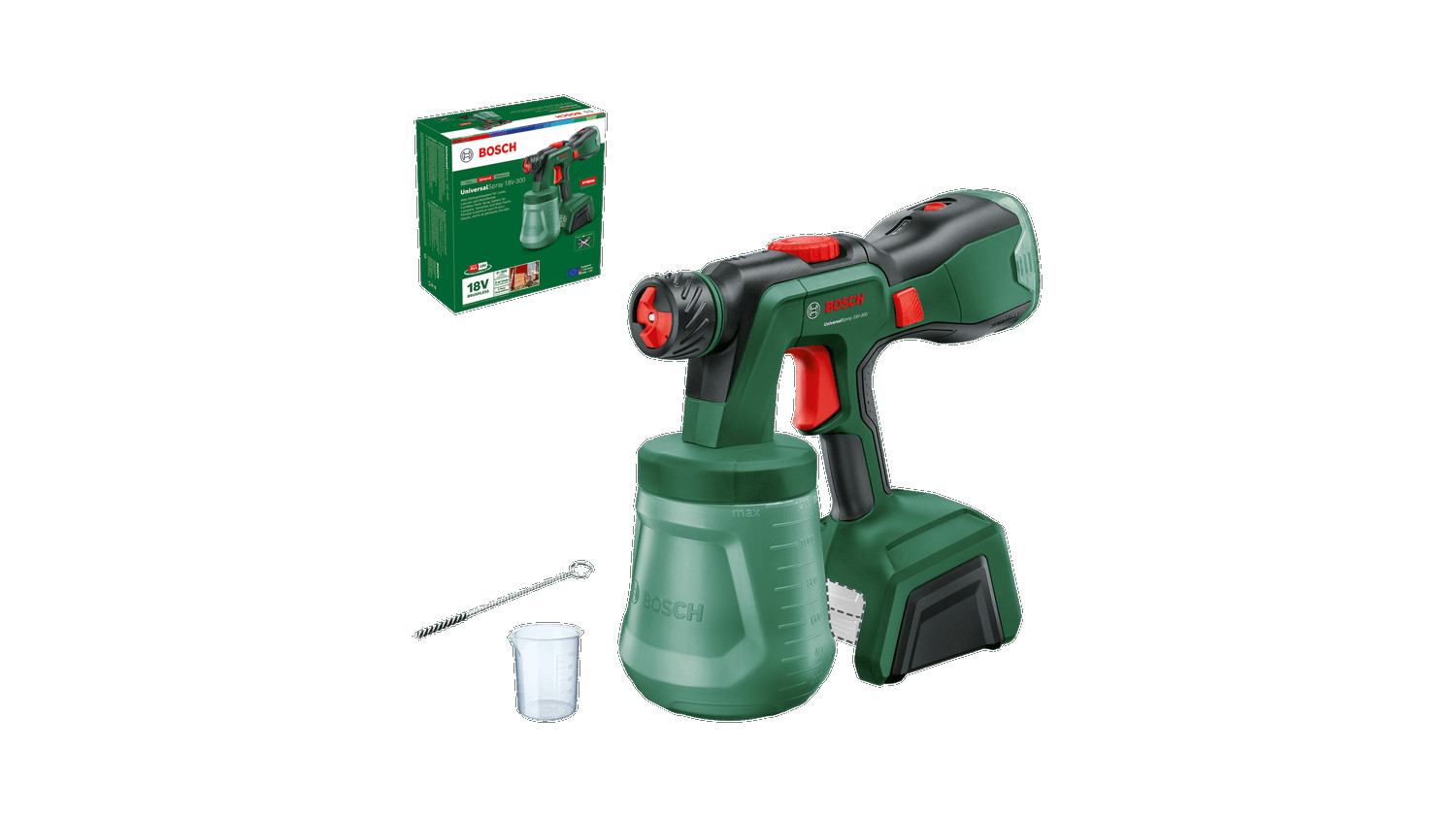 Et saavutada kiiresti kvaliteetne värvimistulemus, naudivad nii algajad kui ka edasijõudnud harrastusmeistrimehed juhtmevaba värvipihusti UniversalSpray 18V-300 pakutavat liikumisvabadust ja lihtsat kasutamist. See on väga mitmekülgne tööriist ühe ALLPaint-düüsiga ja harjadega mootoriga iga tüüpi (seina)värvi ja laki kiireks pihustamiseks. Värvihulka saab EasySelect-pöidlarattaga mugavalt reguleerida ja seadmel on kaheastmeline kiirusesäte puiduvärvilt seinavärvile üleminekuks. Värvipaagi saab tänu selle ergonoomilisele kujule kiiresti uuesti täita. SDS-nupuga saab tööriista esi- ja tagaosa lihtsalt lahutada, mis võimaldab seda vaevata puhastada. Tänu SYNEON-tehnoloogiale on pihusti energiatõhus ja pika tööajaga, mis säästab suurte pindade värvimisel aega. Tööriist kuulub süsteemi 18V POWER FOR ALL. Ühte akut saab kasutada kõikide 18V POWER FOR ALL tööriistadega.