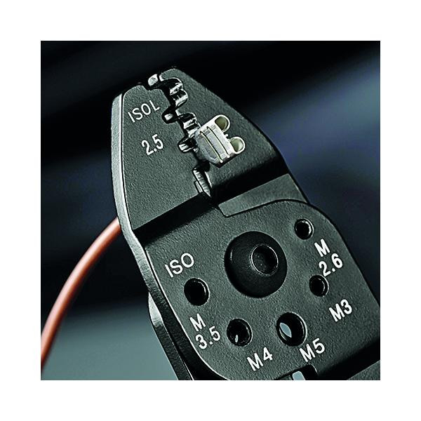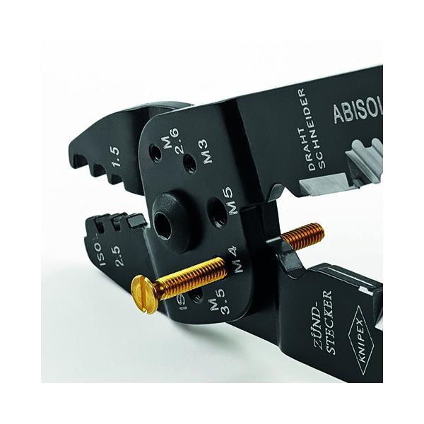 Krimpēšanas knaibles, Knipex, 97 21 215 B SB, neizolētiem spraudņu savienotājiem (platums 6.3 mm), 0.5-2.5 mm², 290 g, 3 krimpēšanas pozīcijas.