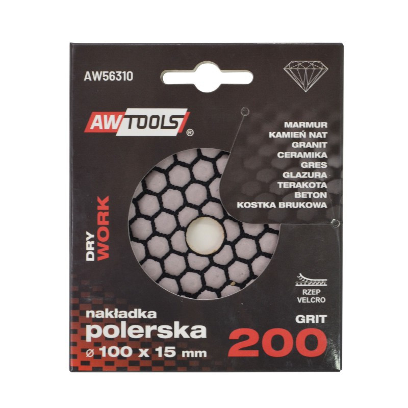 Sauss dimanta pulēšanas spilventiņš 100mm, graudu 200, AW56310, AWTOOLS