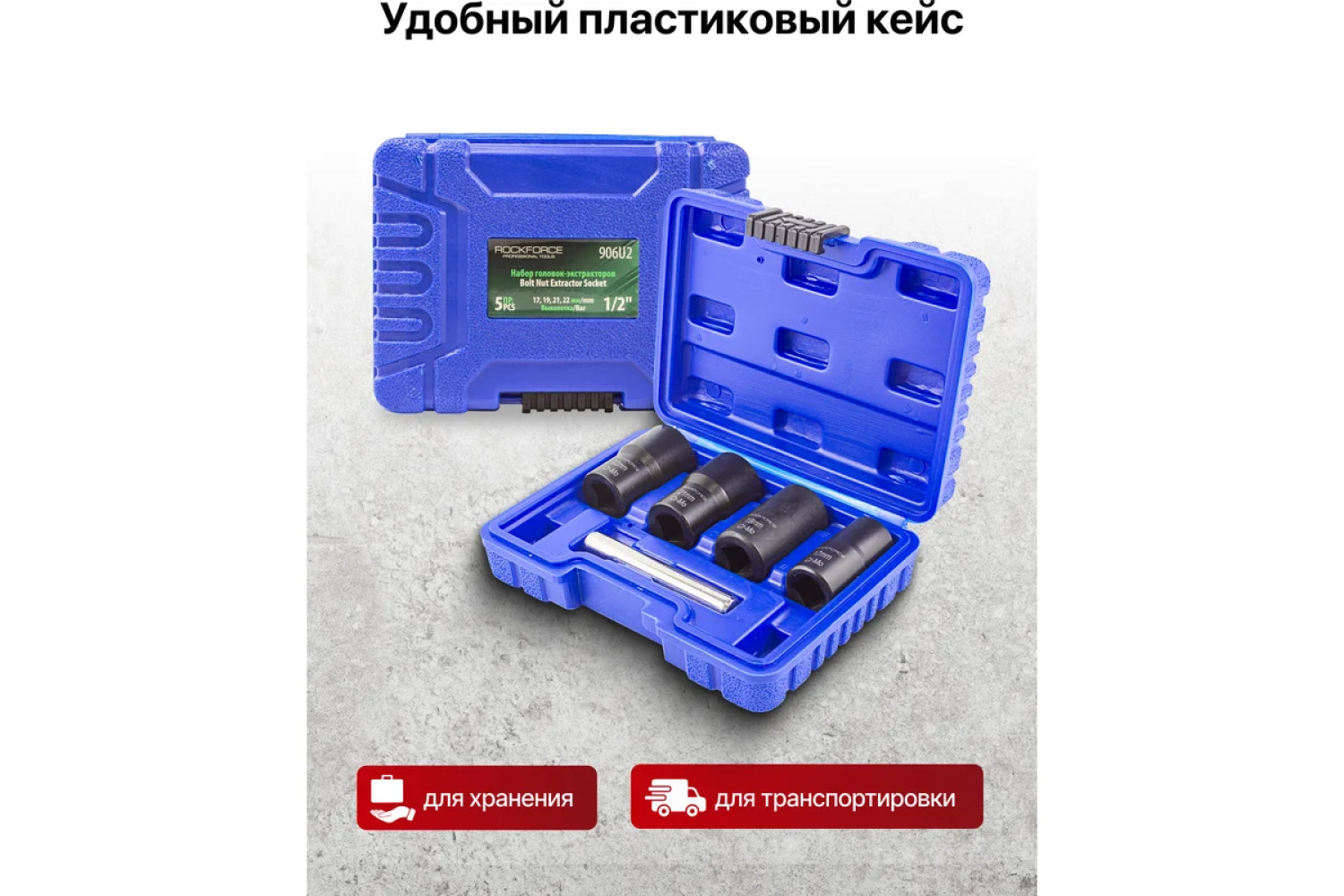 ROCKFORCE brändi ekstraktori komplekt on usaldusväärne lahendus kahjustatud, roostes või kinni jäänud kruvide ja mutrite demontaaži jaoks. See on asendamatu autotööstuses, ehituses, tehnikateeninduses ja kodustes töötoast. Komplekt sobib ideaalselt tööks mutrite, kruvide ja poldidega, mida ei saa tavaliste tööriistadega eemaldada.