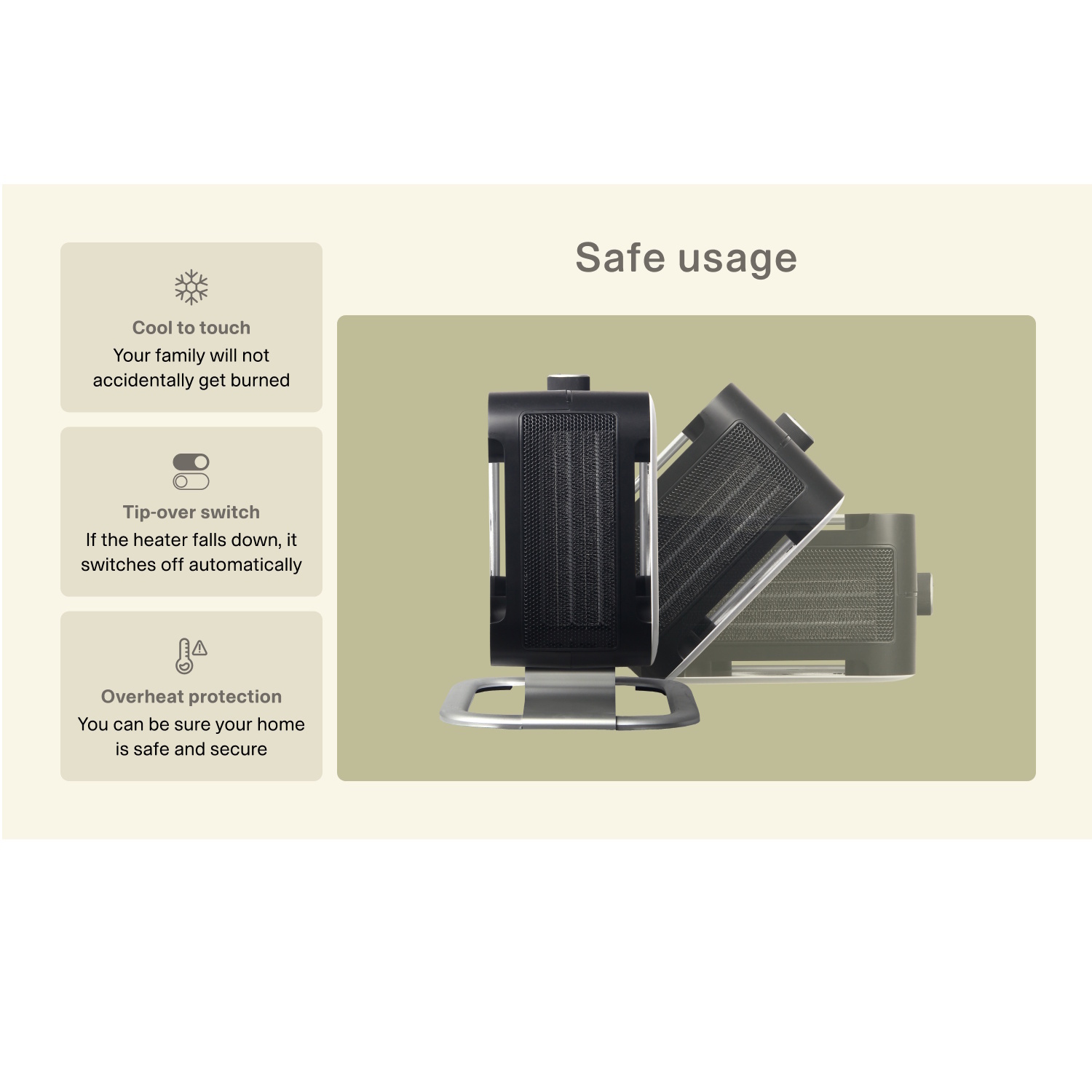 PTC-element + ventilaator – kiire ja efektiivne soojus.