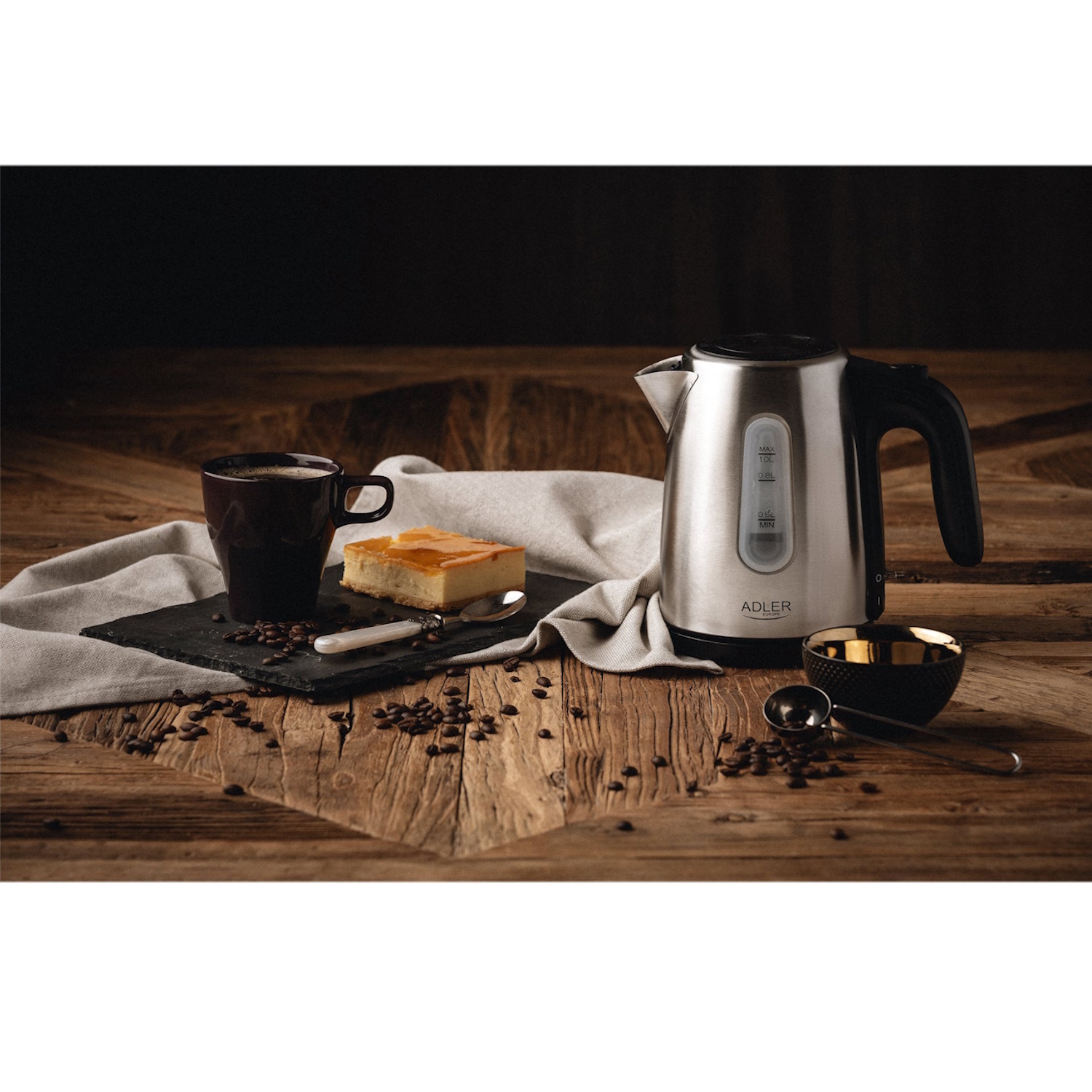 Adler AD1273 erineb tavapärastest plastikust veekeetjatest oma täismetallist korpuse ja premium-klassi välimuse poolest. See pakub kiiret vee kuumutamist, samal ajal hoides energiakulu kontrolli all tänu 1 L optimaalsele mahule. Veekeetja sobib kasutajale, kes soovib töökindlat igapäevast seadet, mis näeb köögis hea välja ja pakub kindlustunnet ka pikaajalisel kasutamisel.